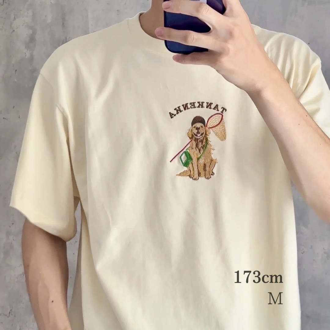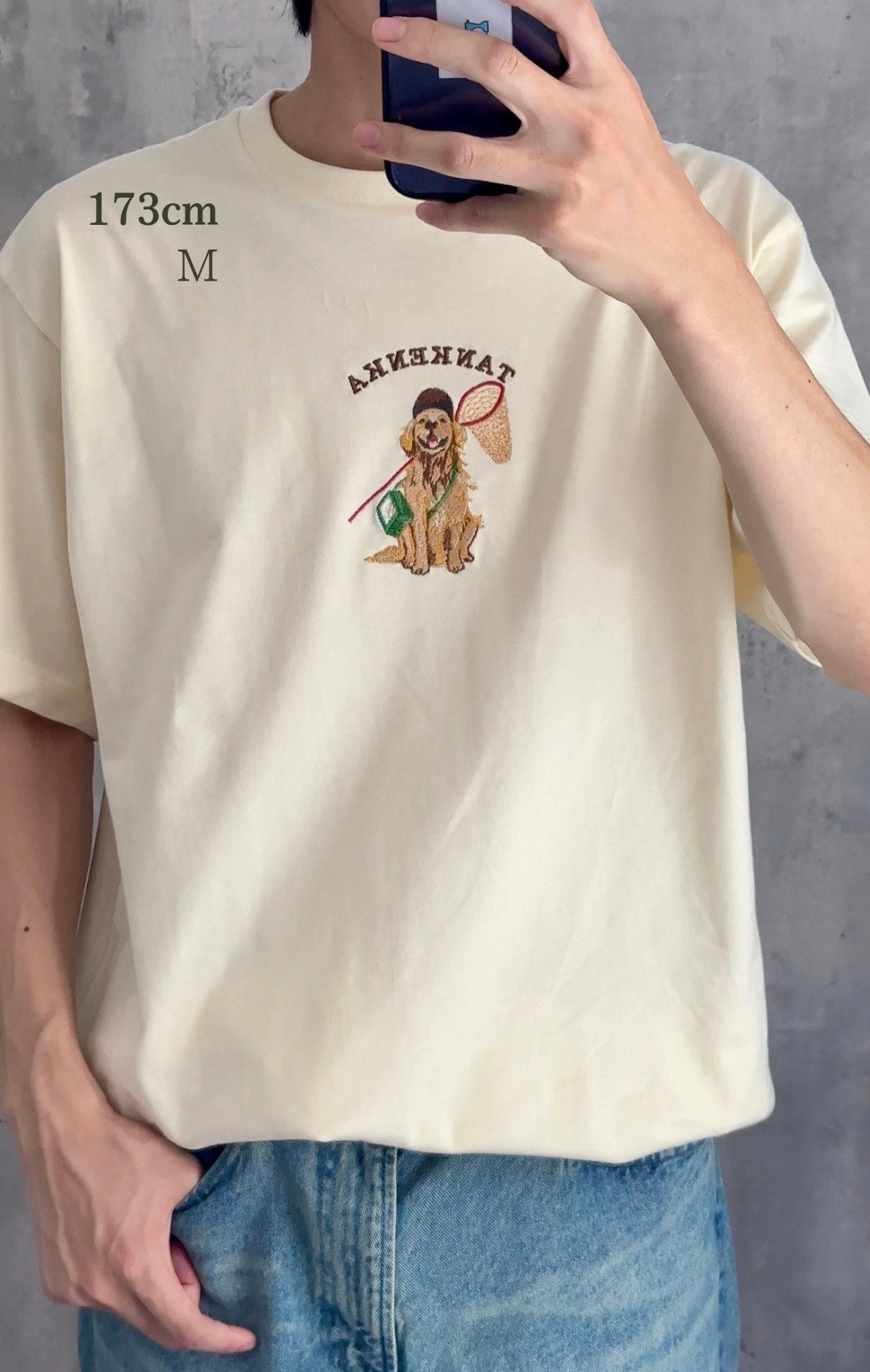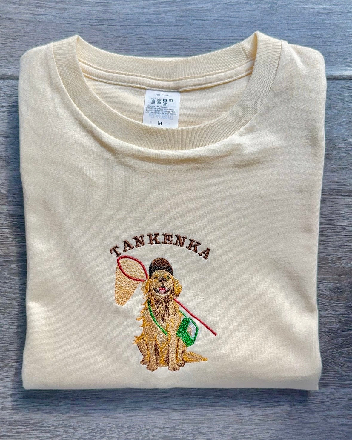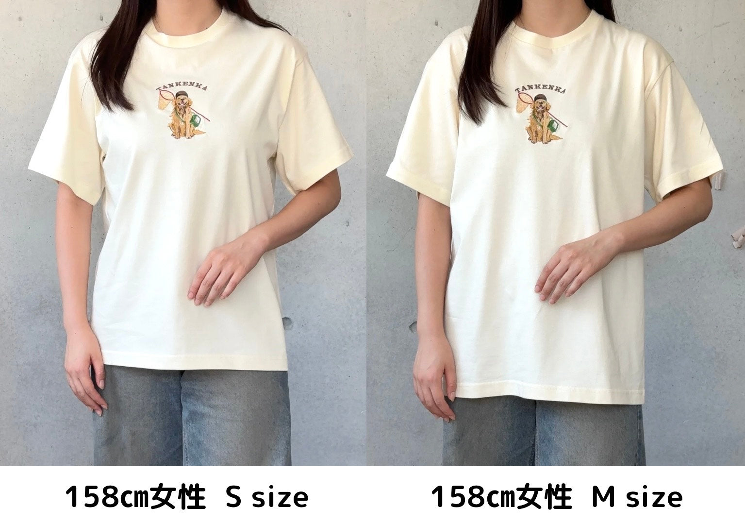 ゴールデンの肩には、虫かごと虫取り網がかかっています🔍
