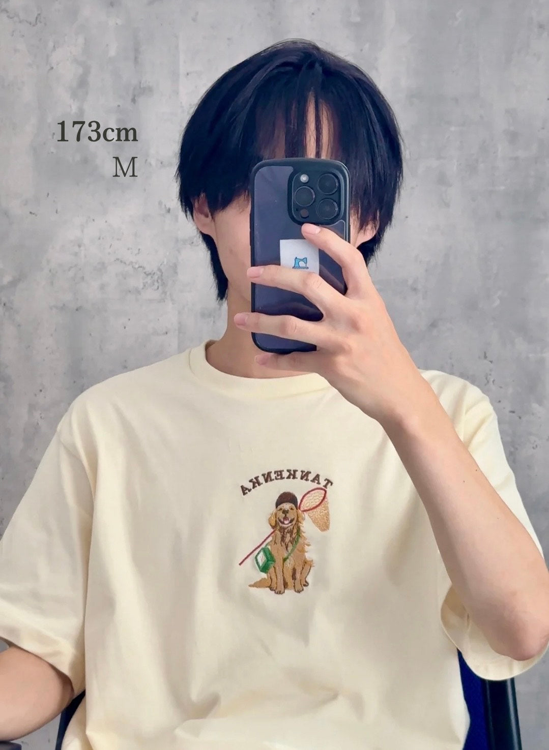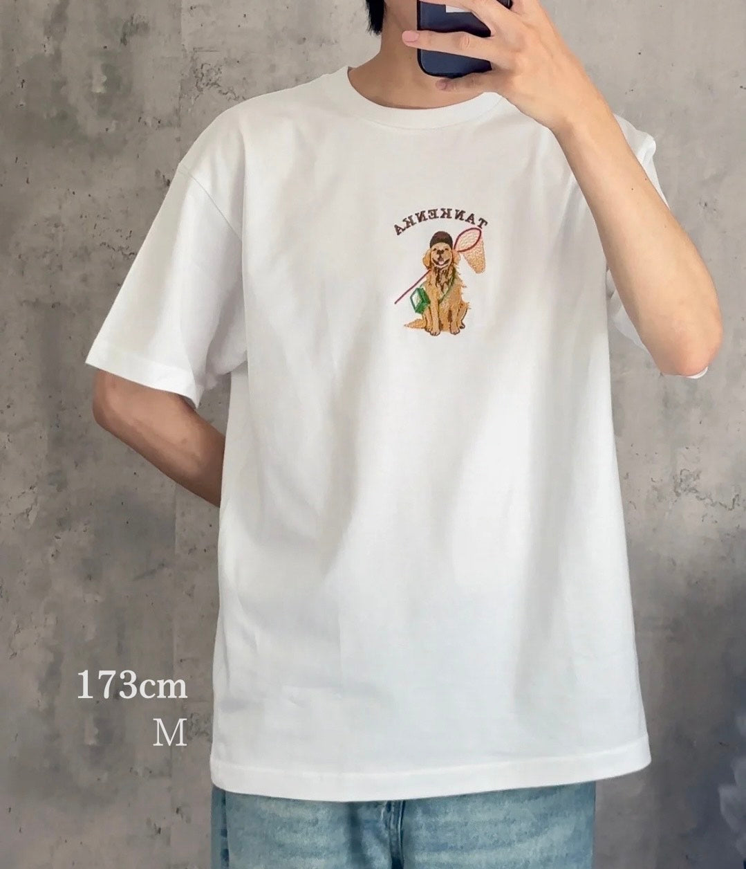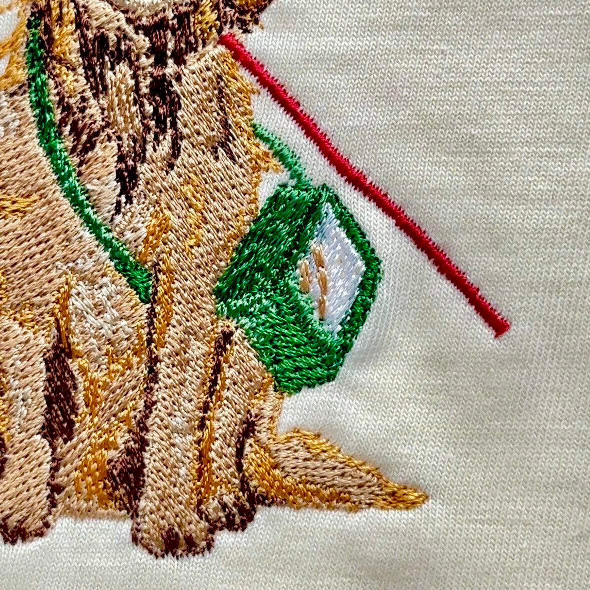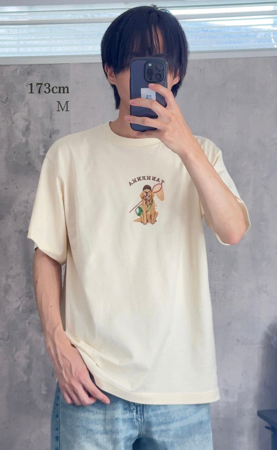 ゴールデンの肩には、虫かごと虫取り網がかかっています🔍
