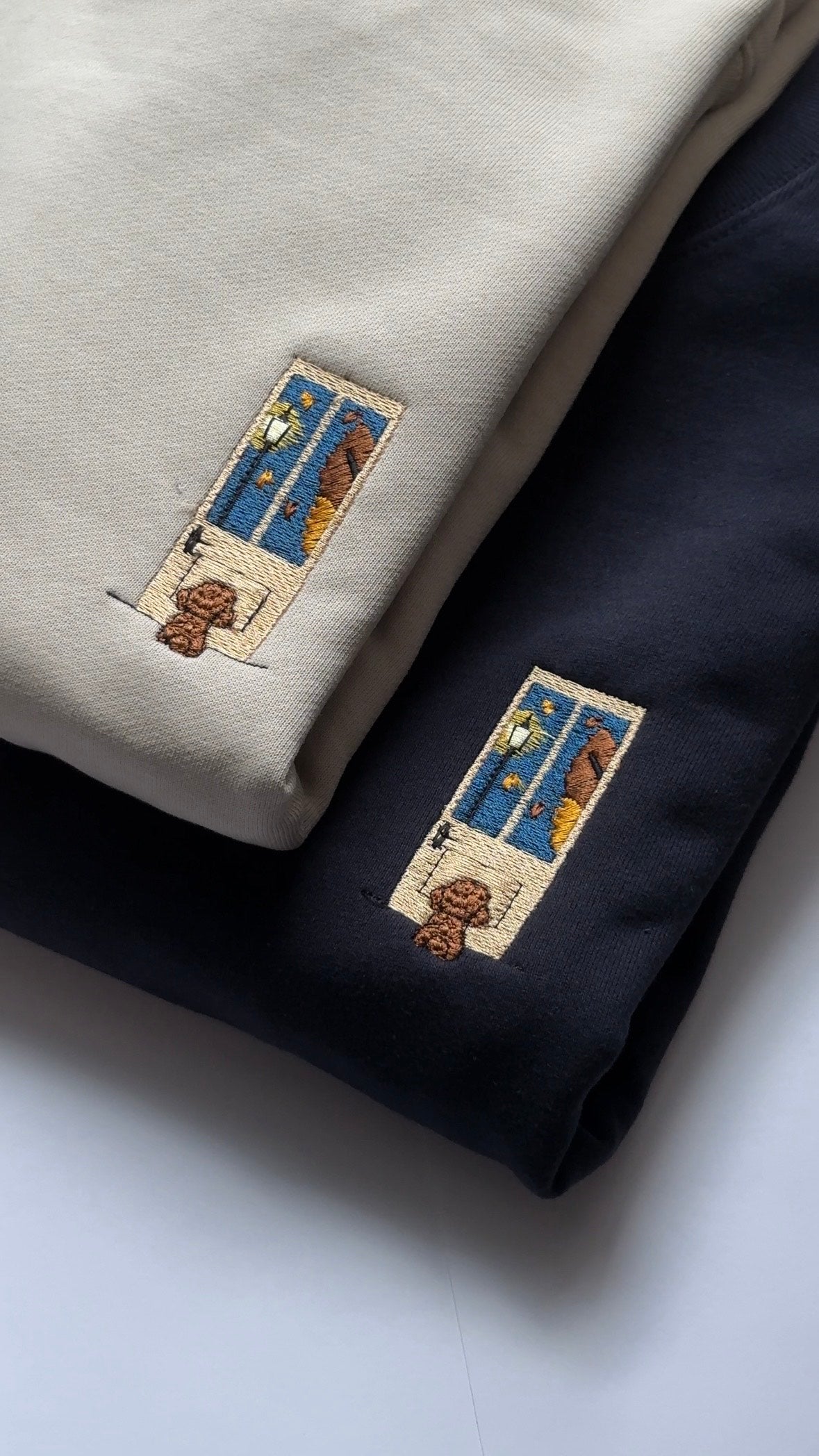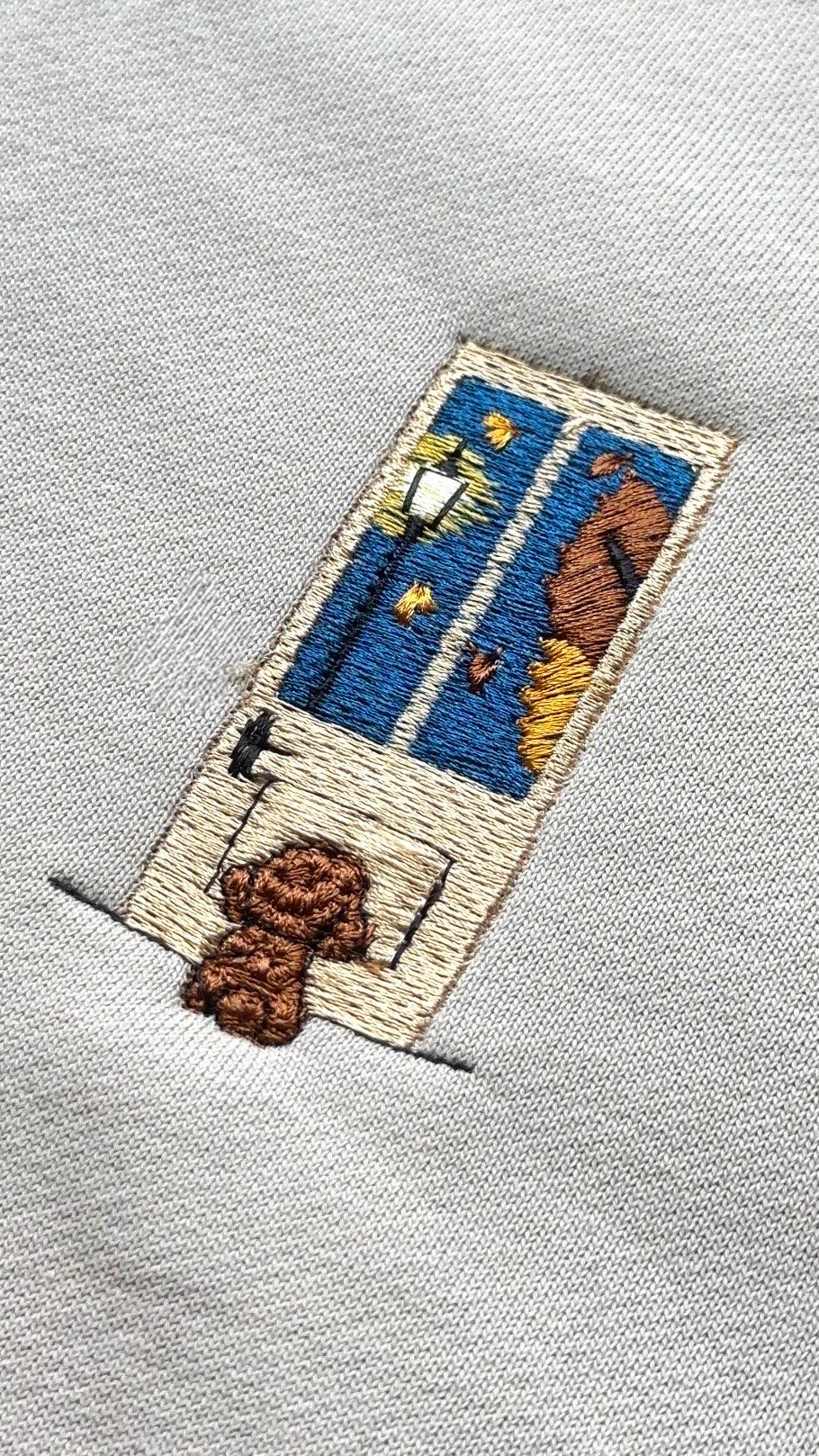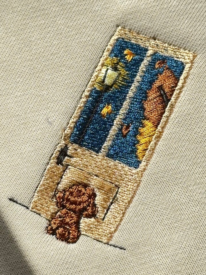 愛犬が飼い主さんを健気に待っている様子を刺繍にしました。