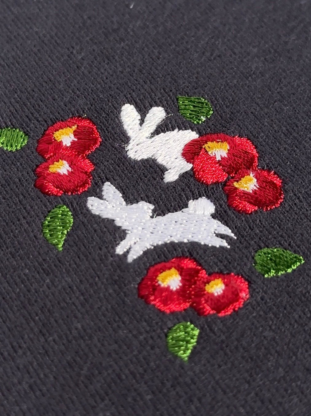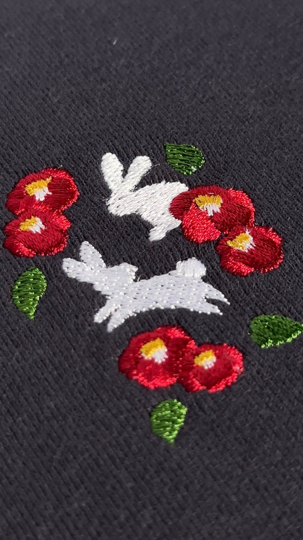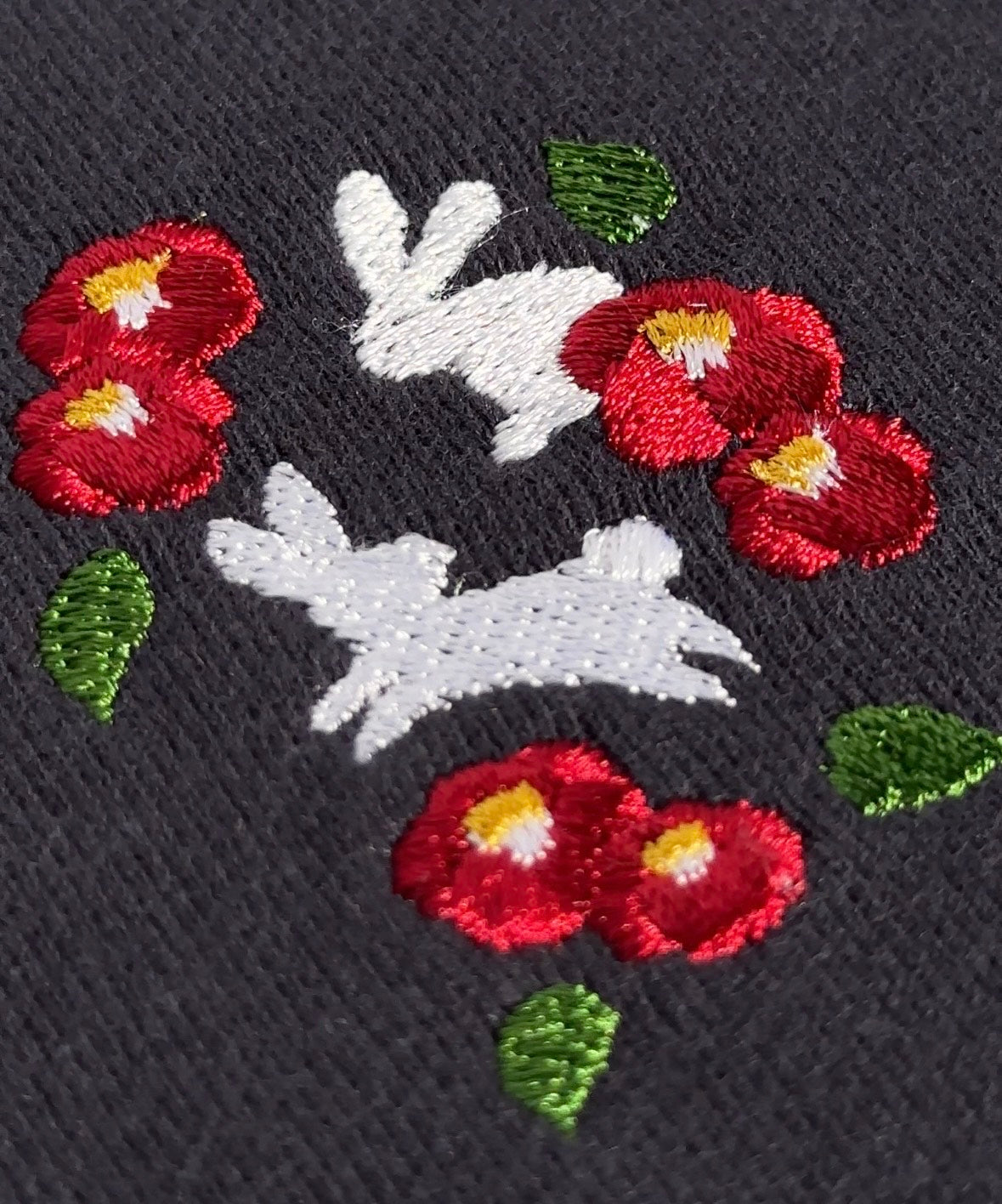 「気取らない優美さ」の花言葉の通り、落ち着いた紅と濃緑で表現しました。