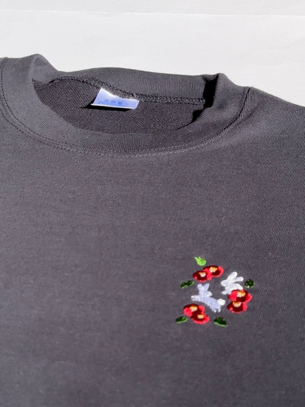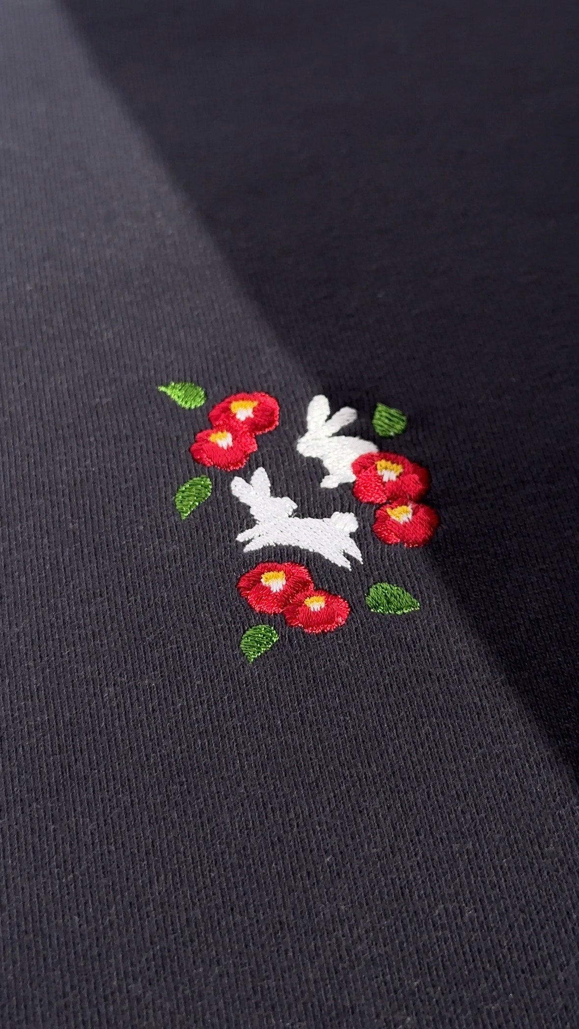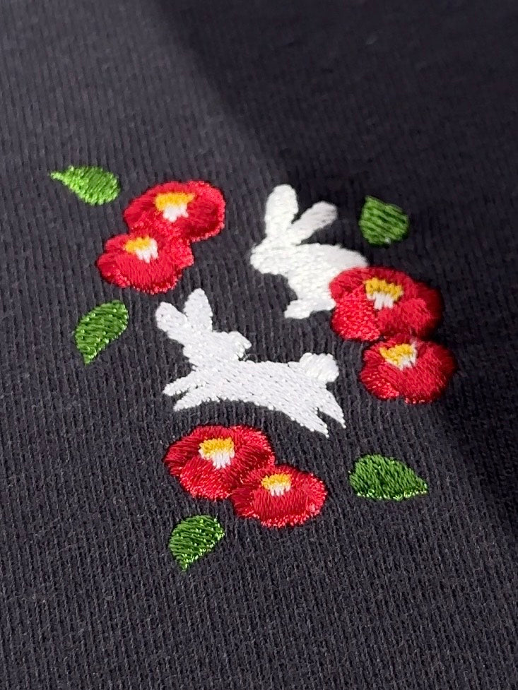 「気取らない優美さ」の花言葉の通り、落ち着いた紅と濃緑で表現しました。