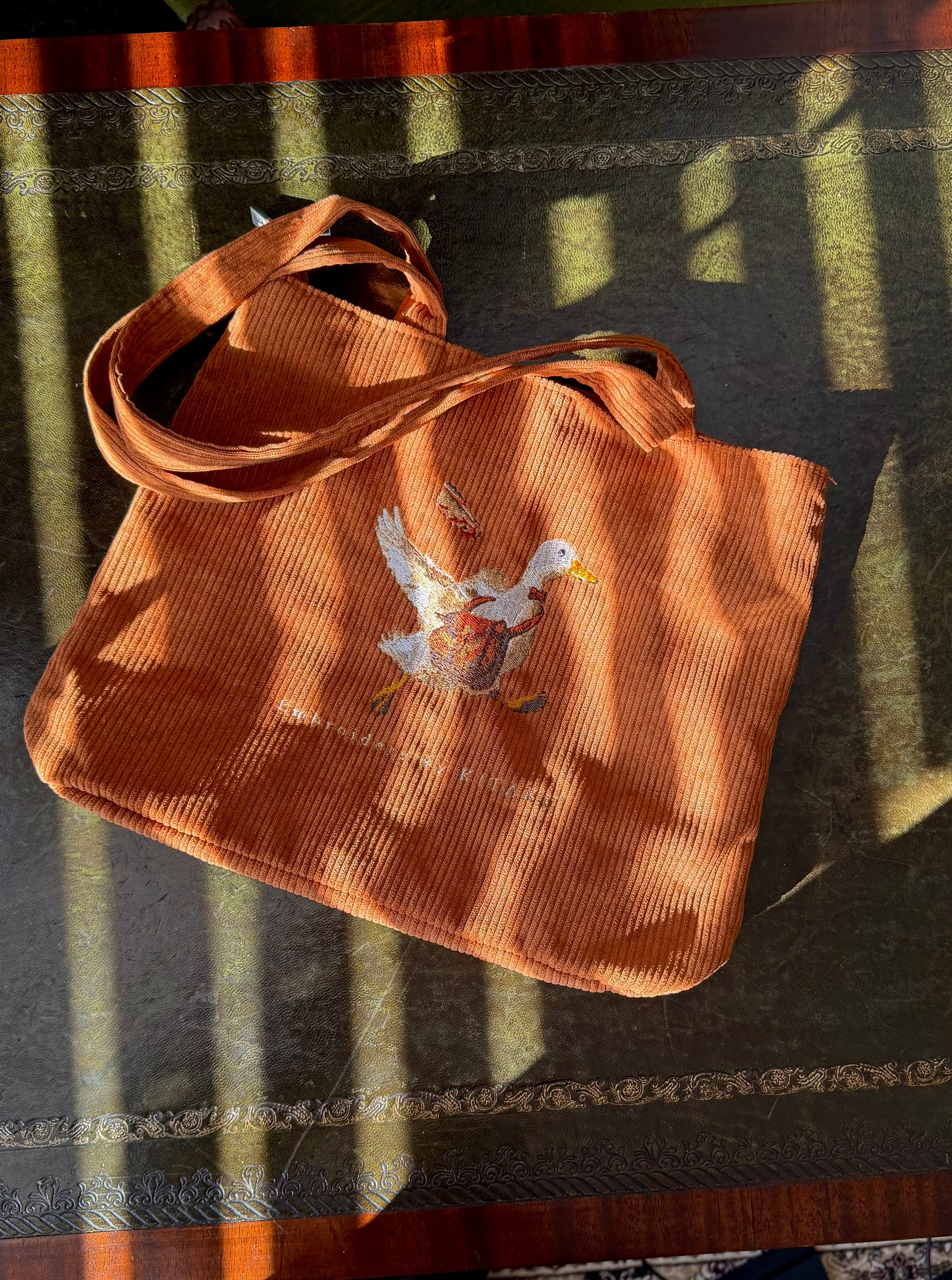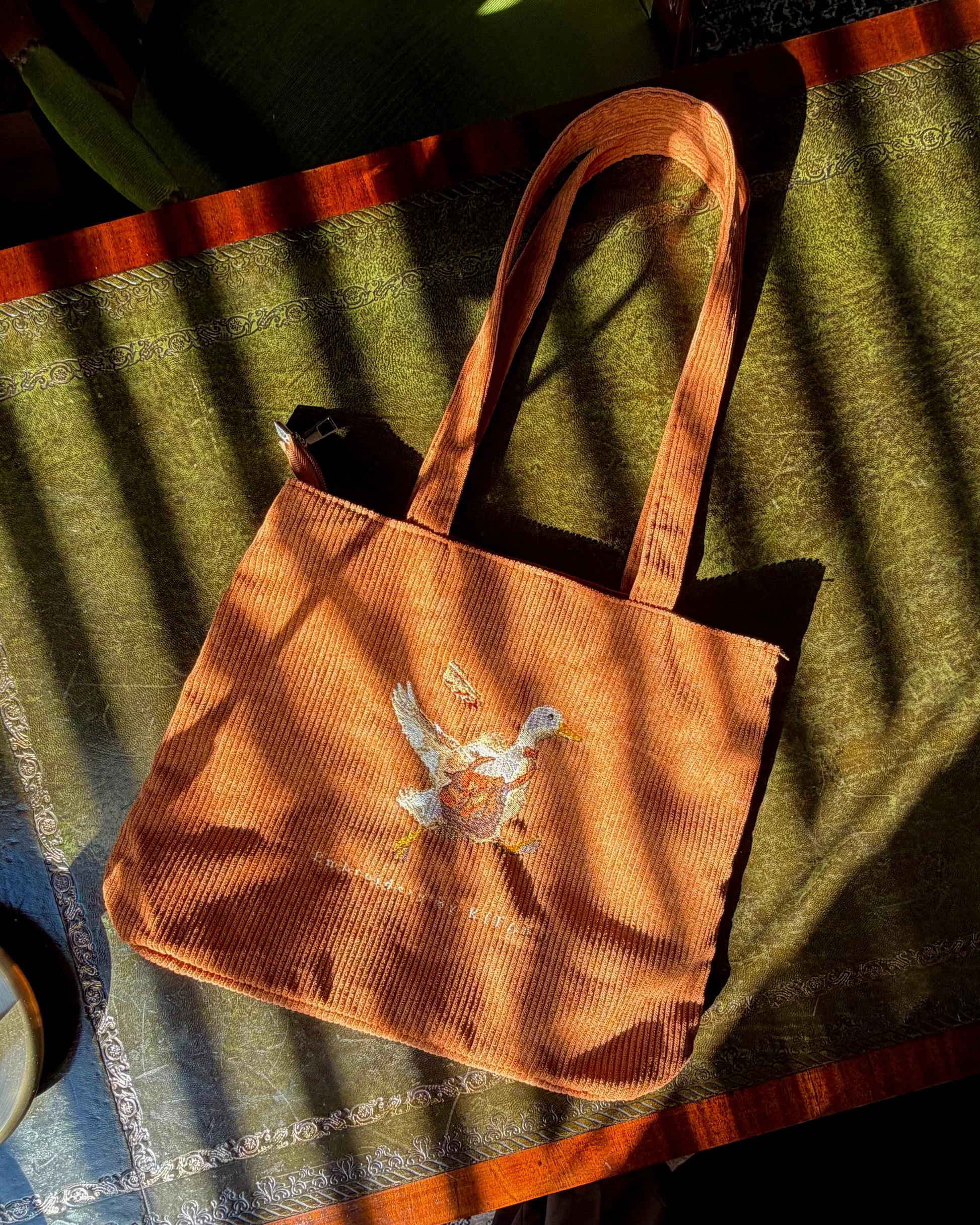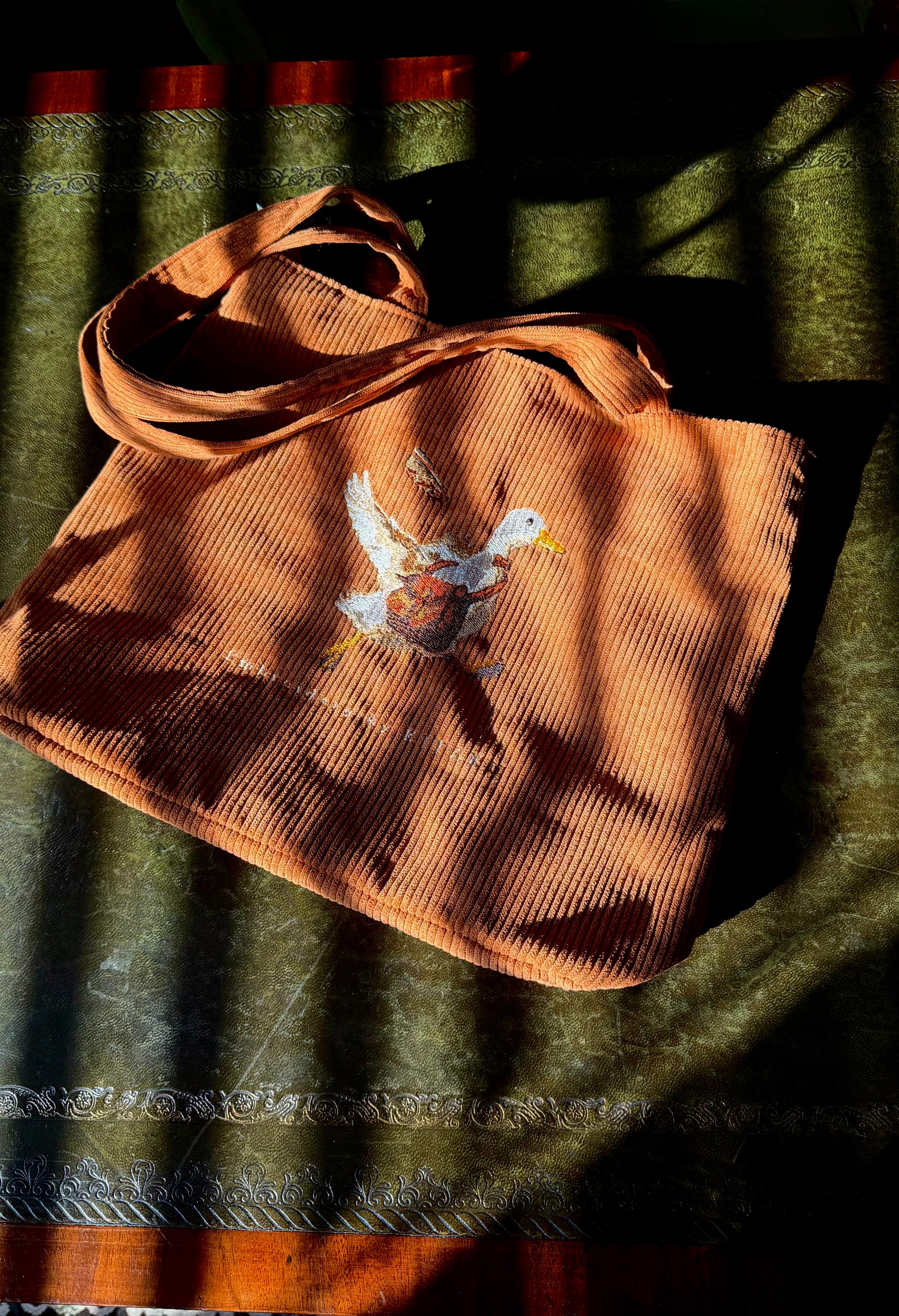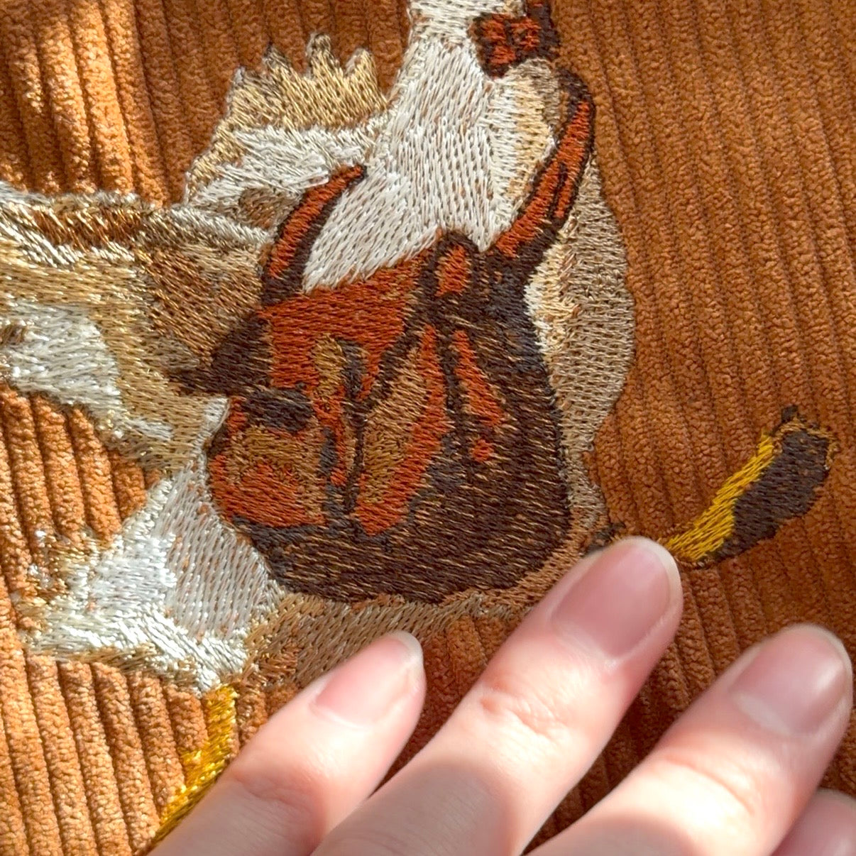 刺繍の温もりと、アヒルのコミカルな動きが絶妙に調和していて、