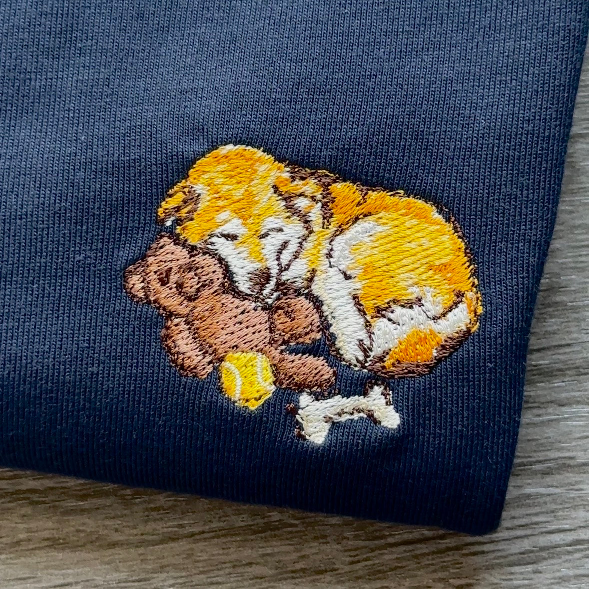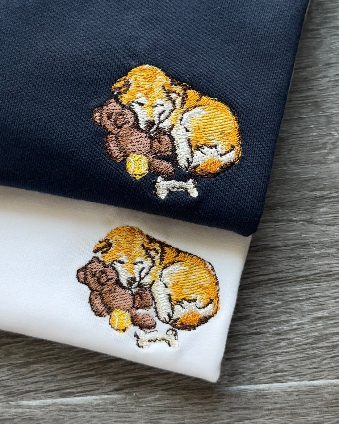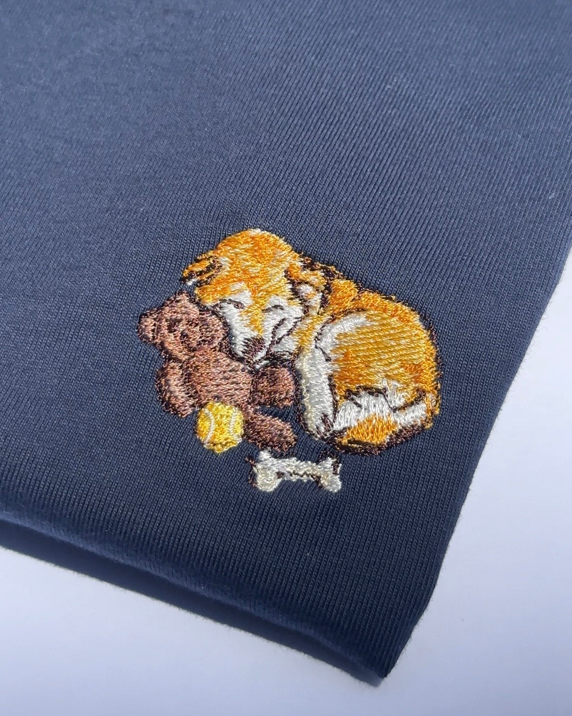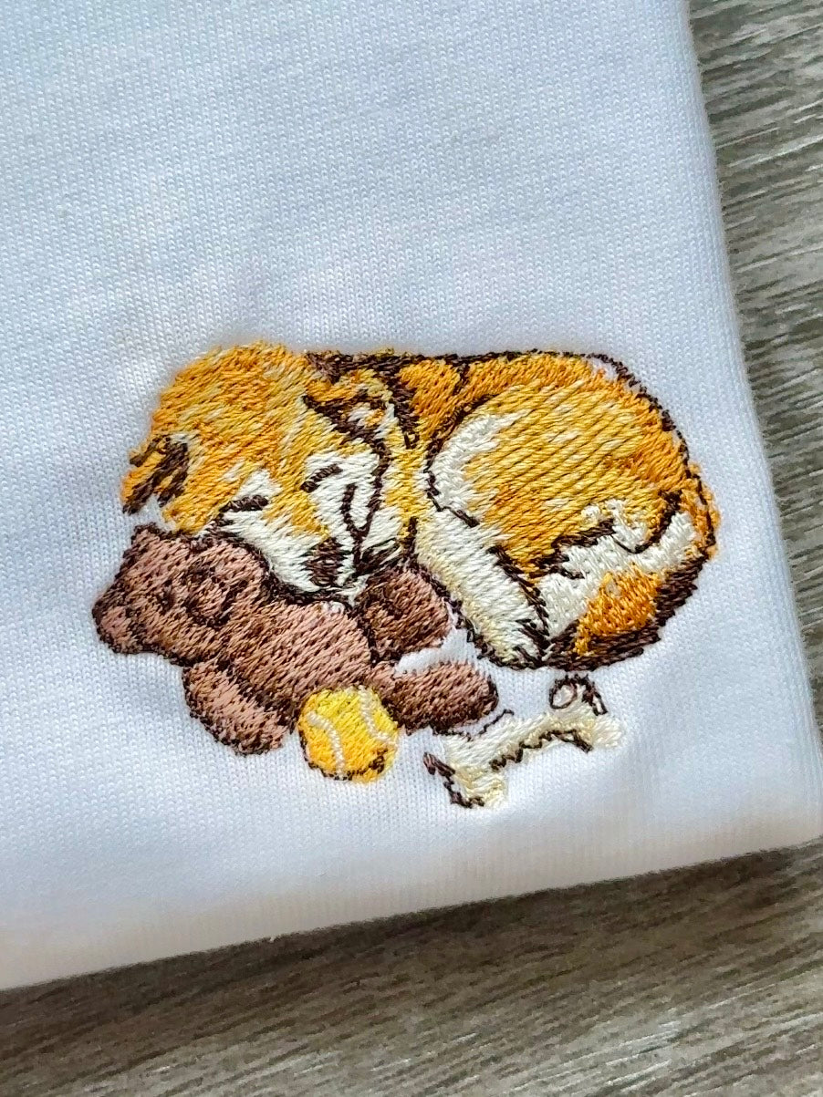 眠った柴犬の刺繍でいつでも一緒にいれるようにしました✨