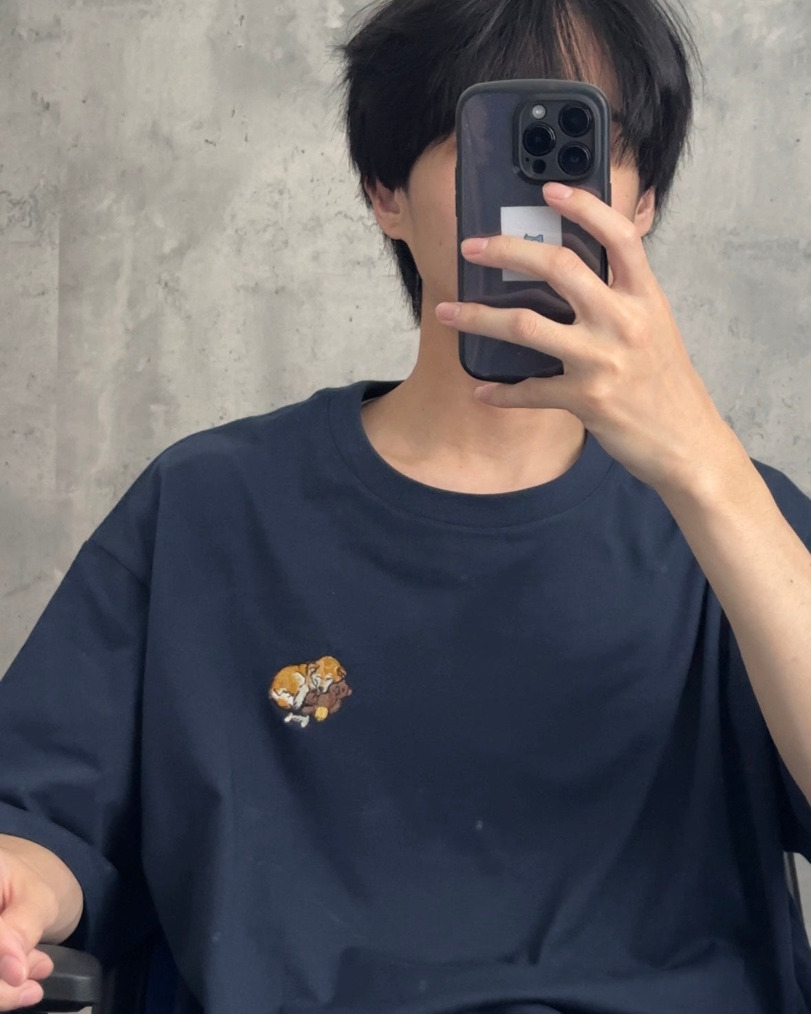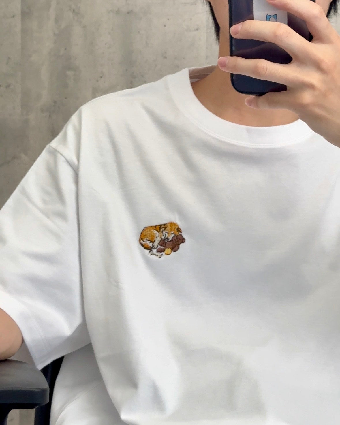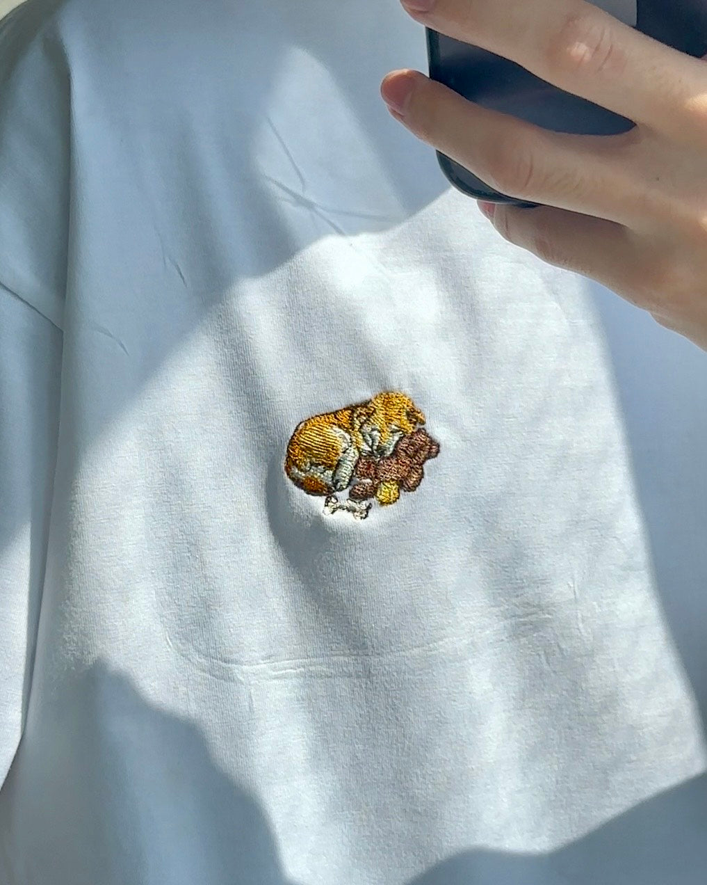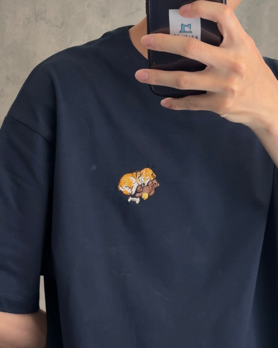 眠った柴犬の刺繍でいつでも一緒にいれるようにしました✨