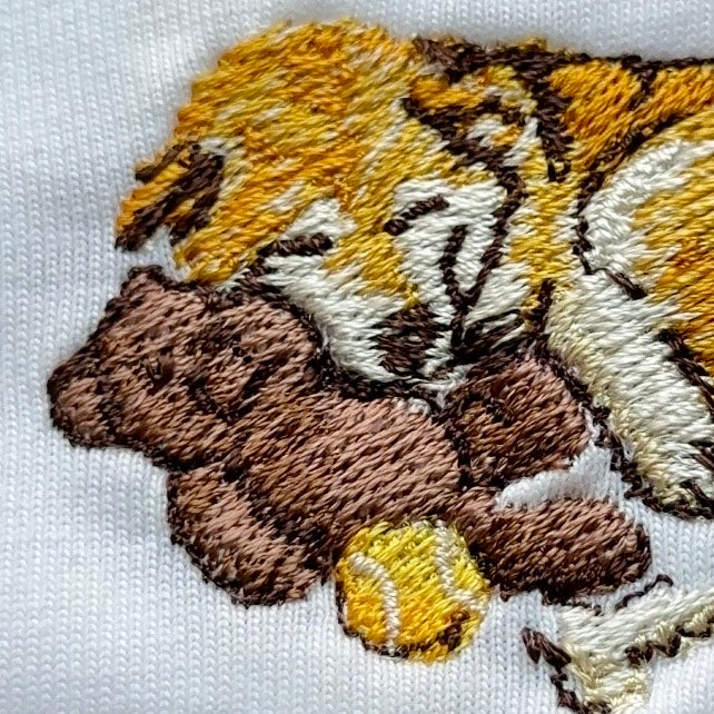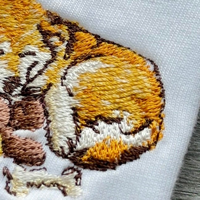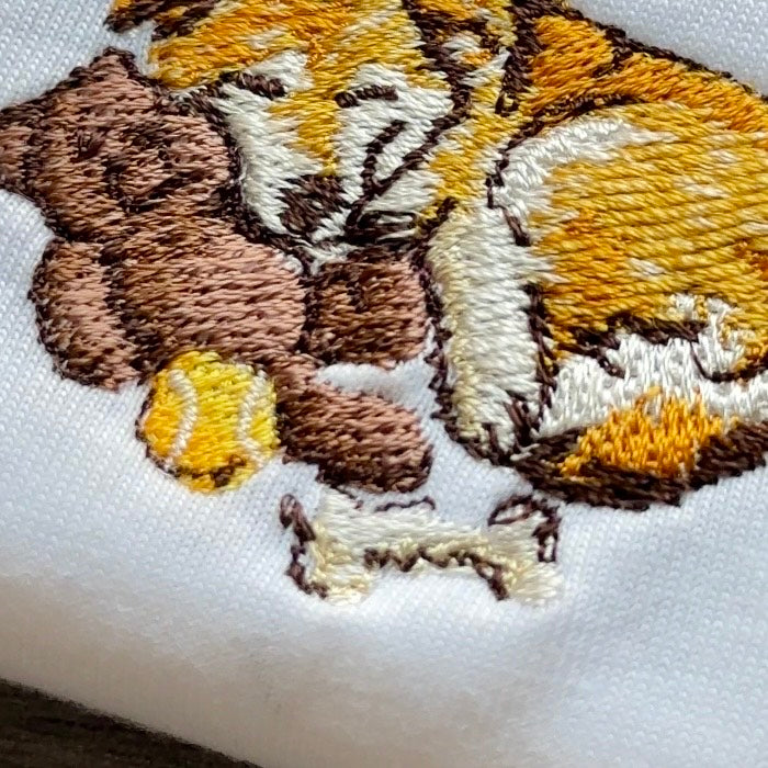 「きつね色」の複数糸色をグラデーションのように重ね、自然な陰影と立体感を作り出しました🐶