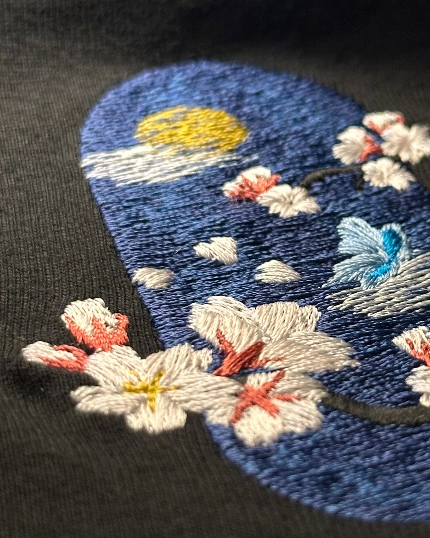 刺繍で力強く一枚一枚表現しています。