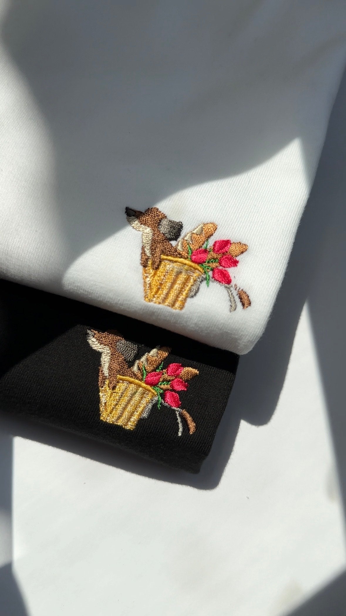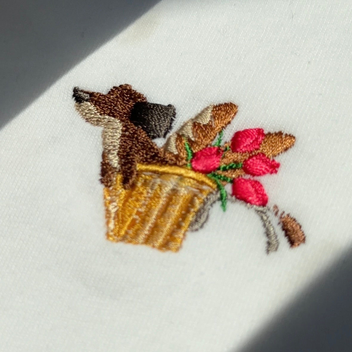 自転車のかごは、複数色をリズミカルなピッチで縫うことで、