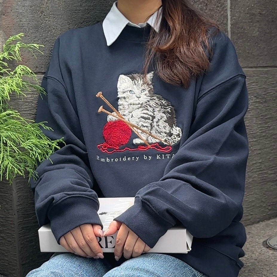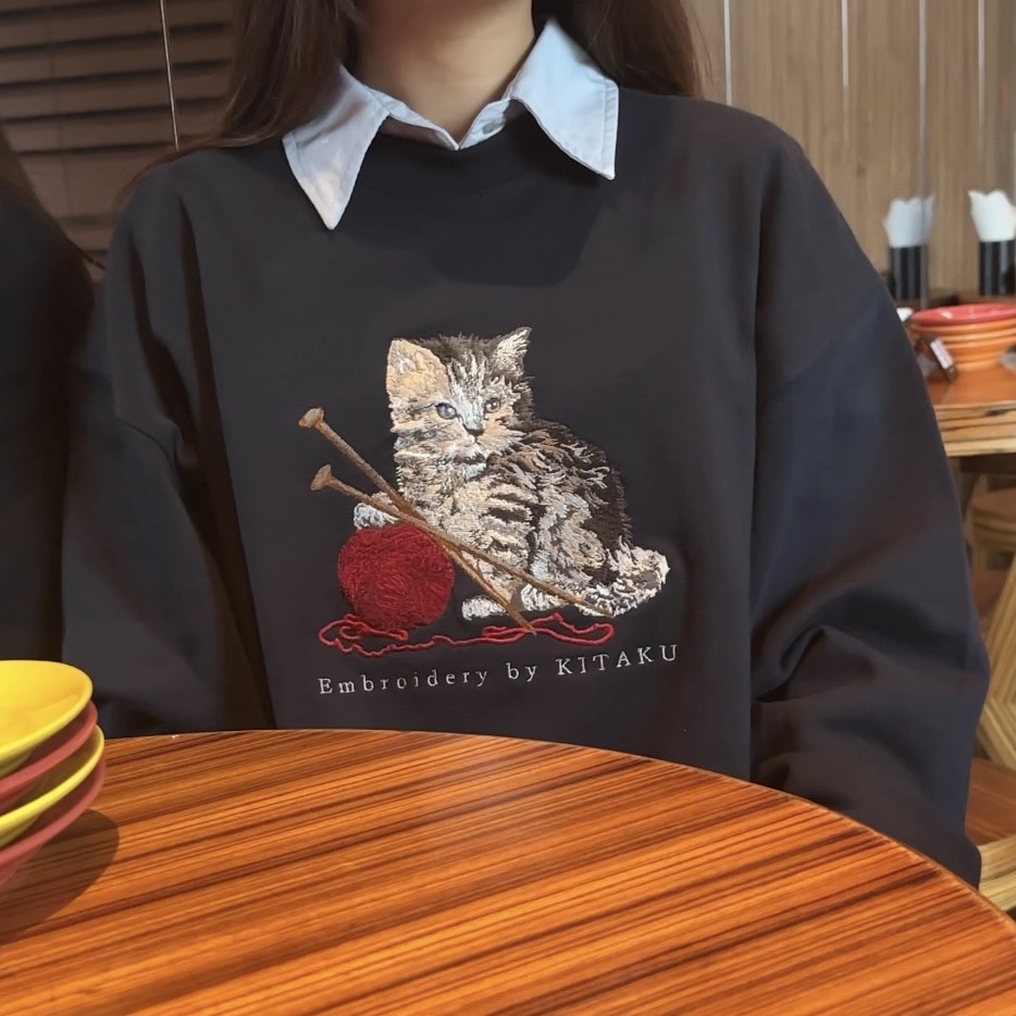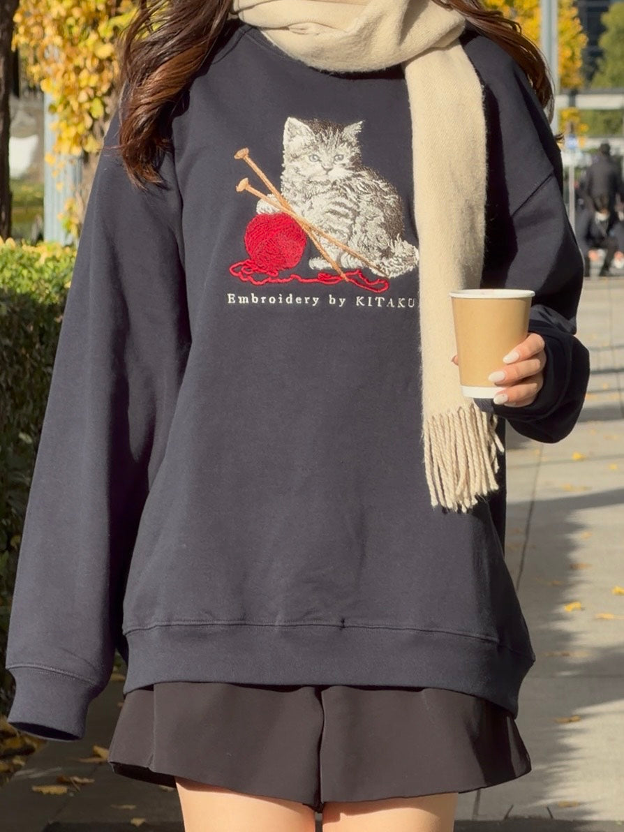 シンプルな形の中の猫の刺繍で、カジュアルさと品の良さを両立させました。
