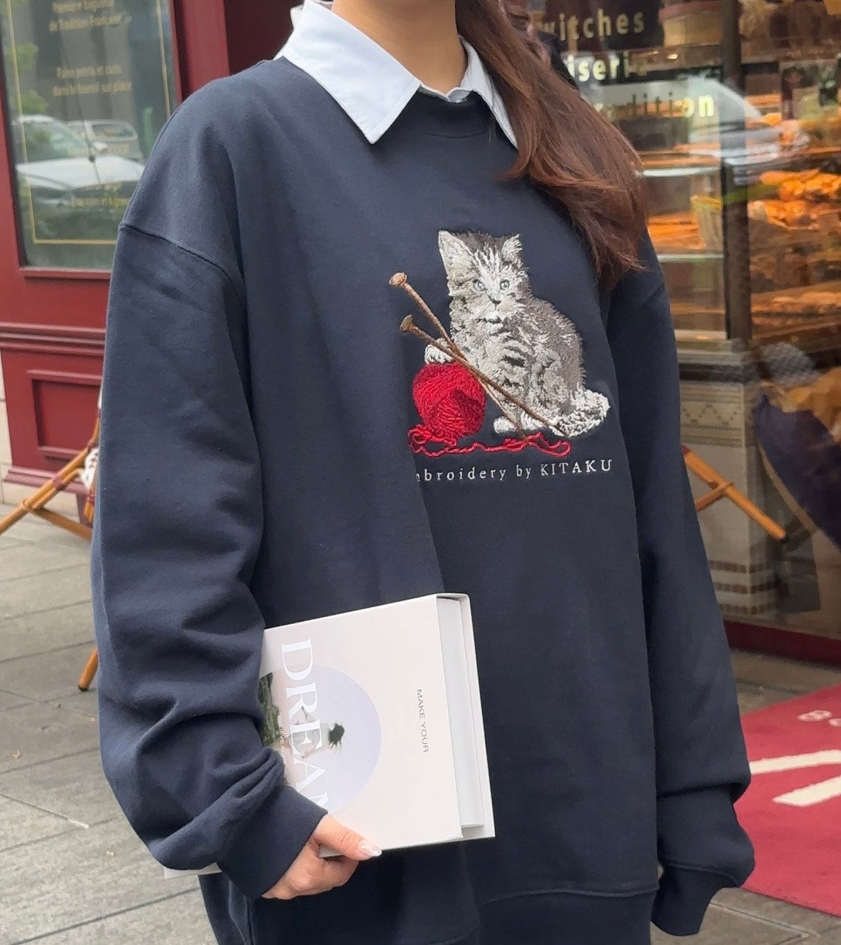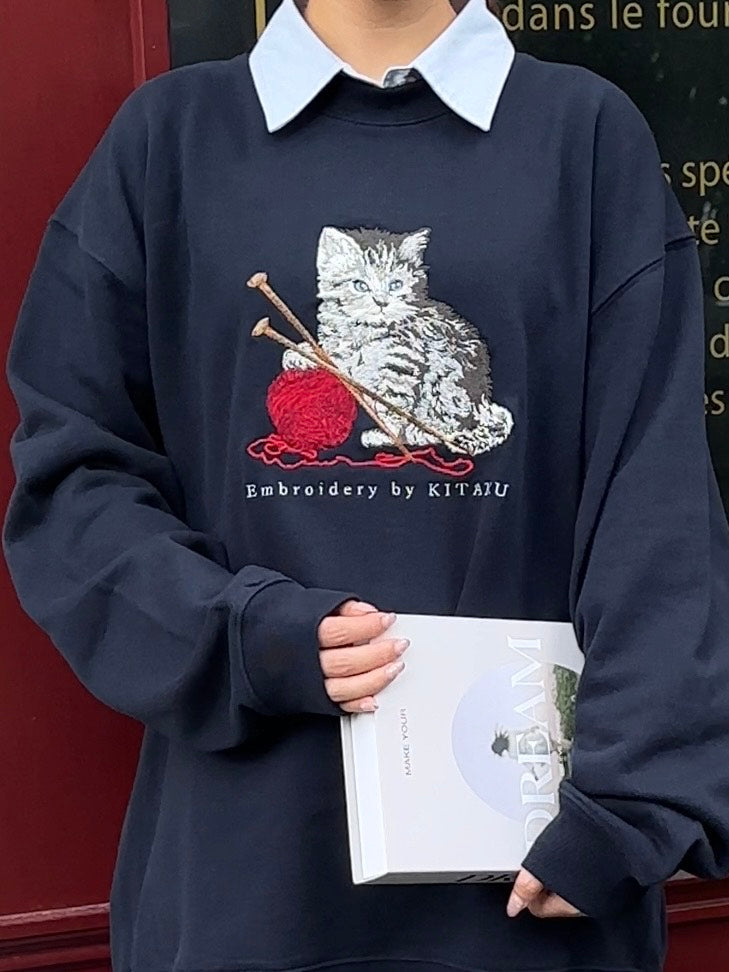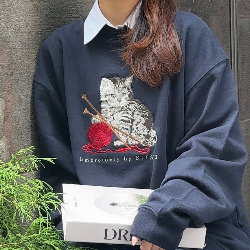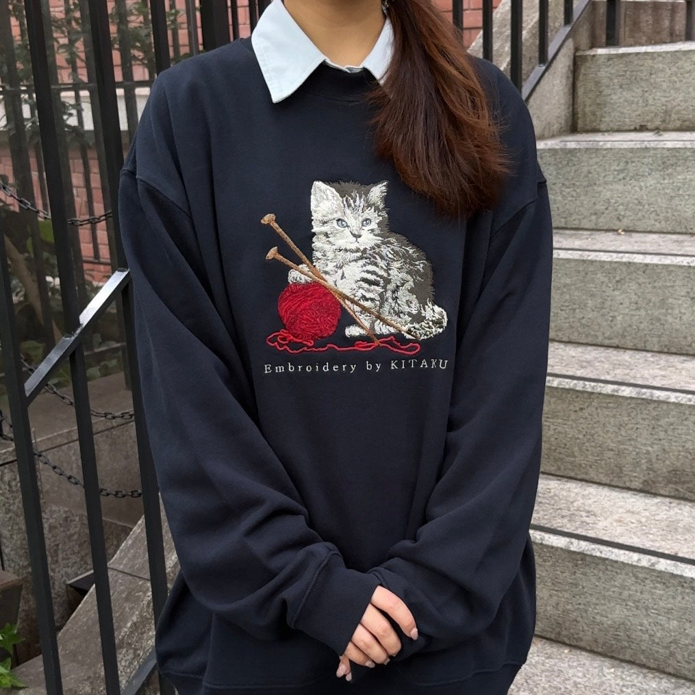シンプルな形の中の猫の刺繍で、カジュアルさと品の良さを両立させました。