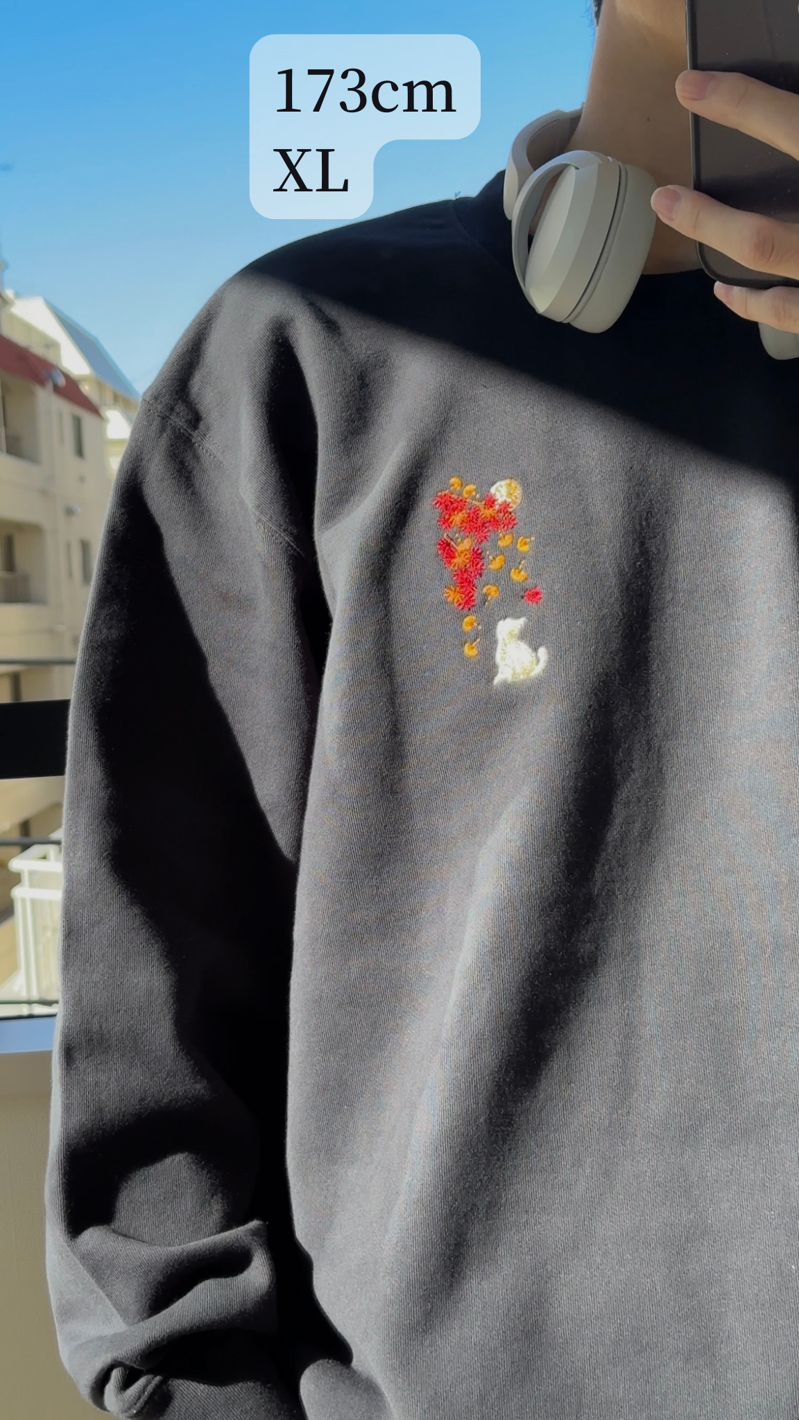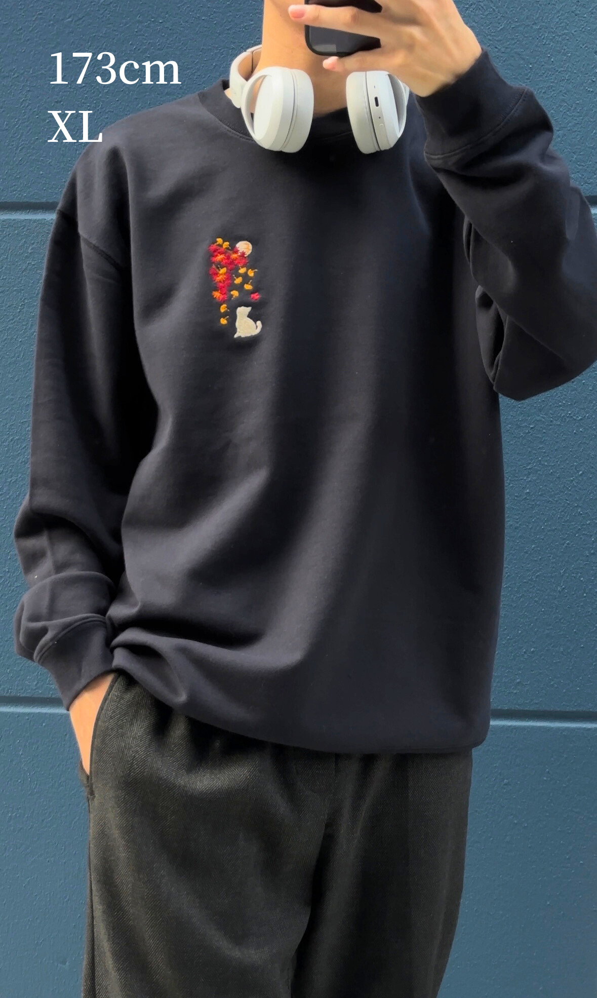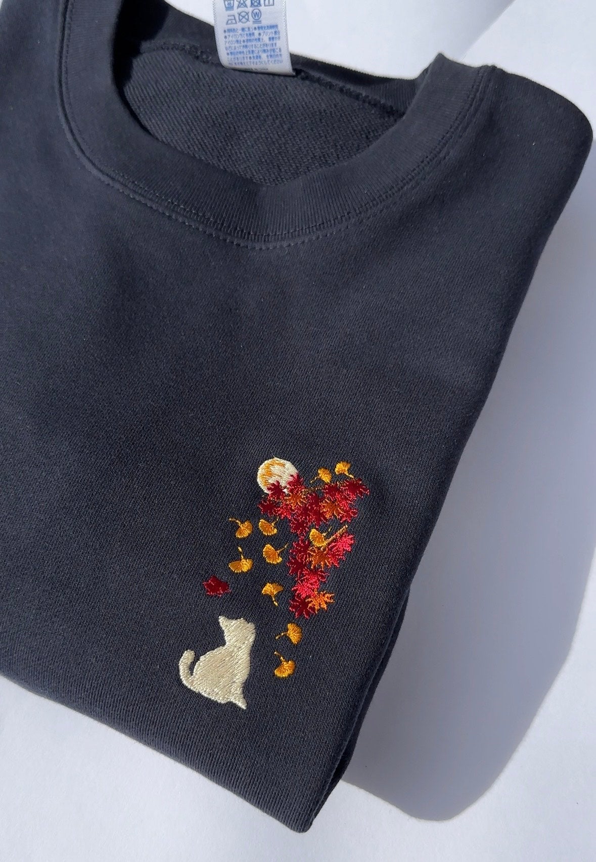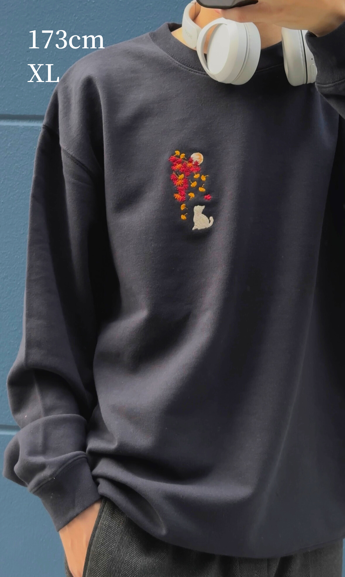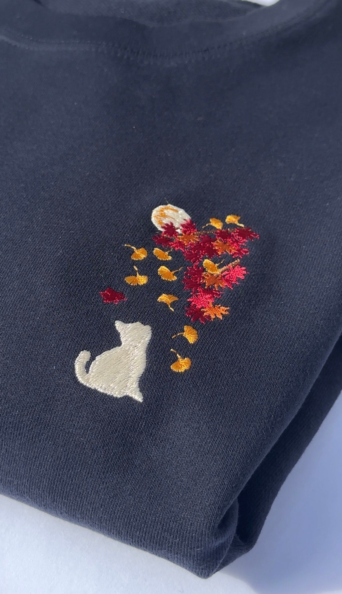 今回ははかない秋に思いをはせる猫を刺繍しました。
