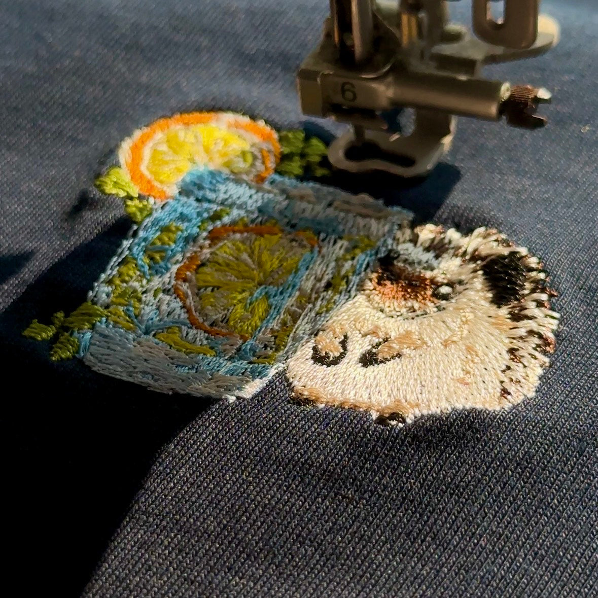 しゅわしゅわ感を透明な糸や光沢のある糸で表現し、