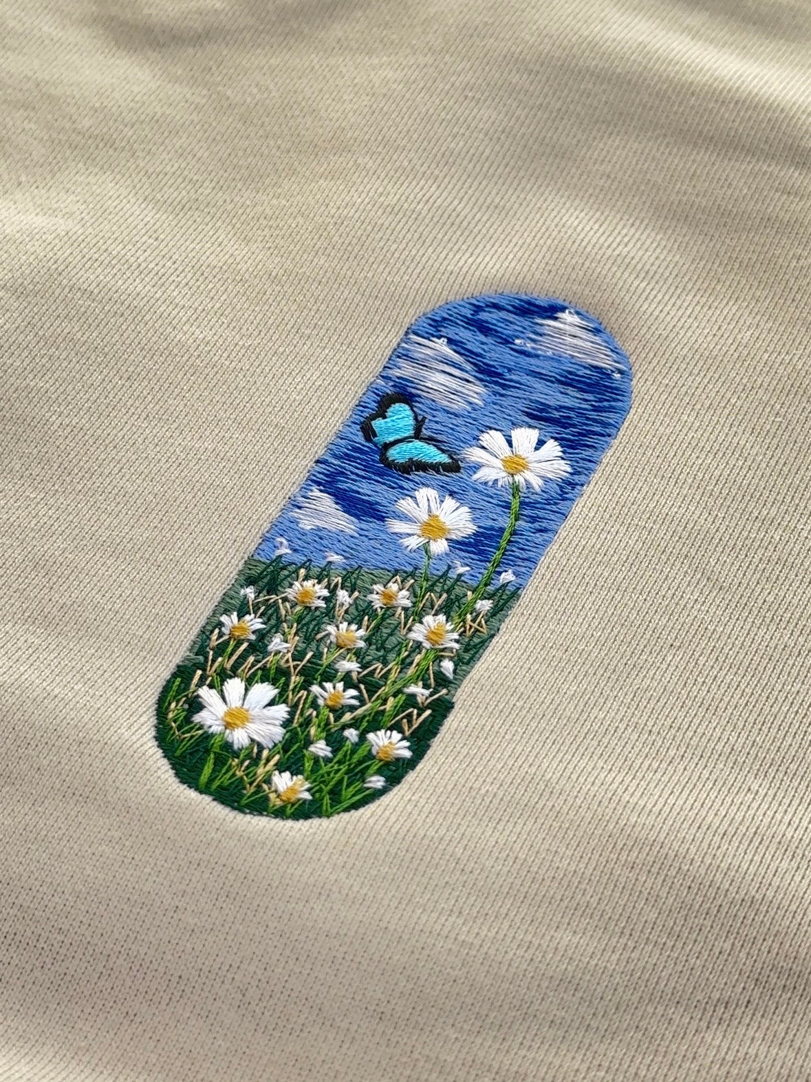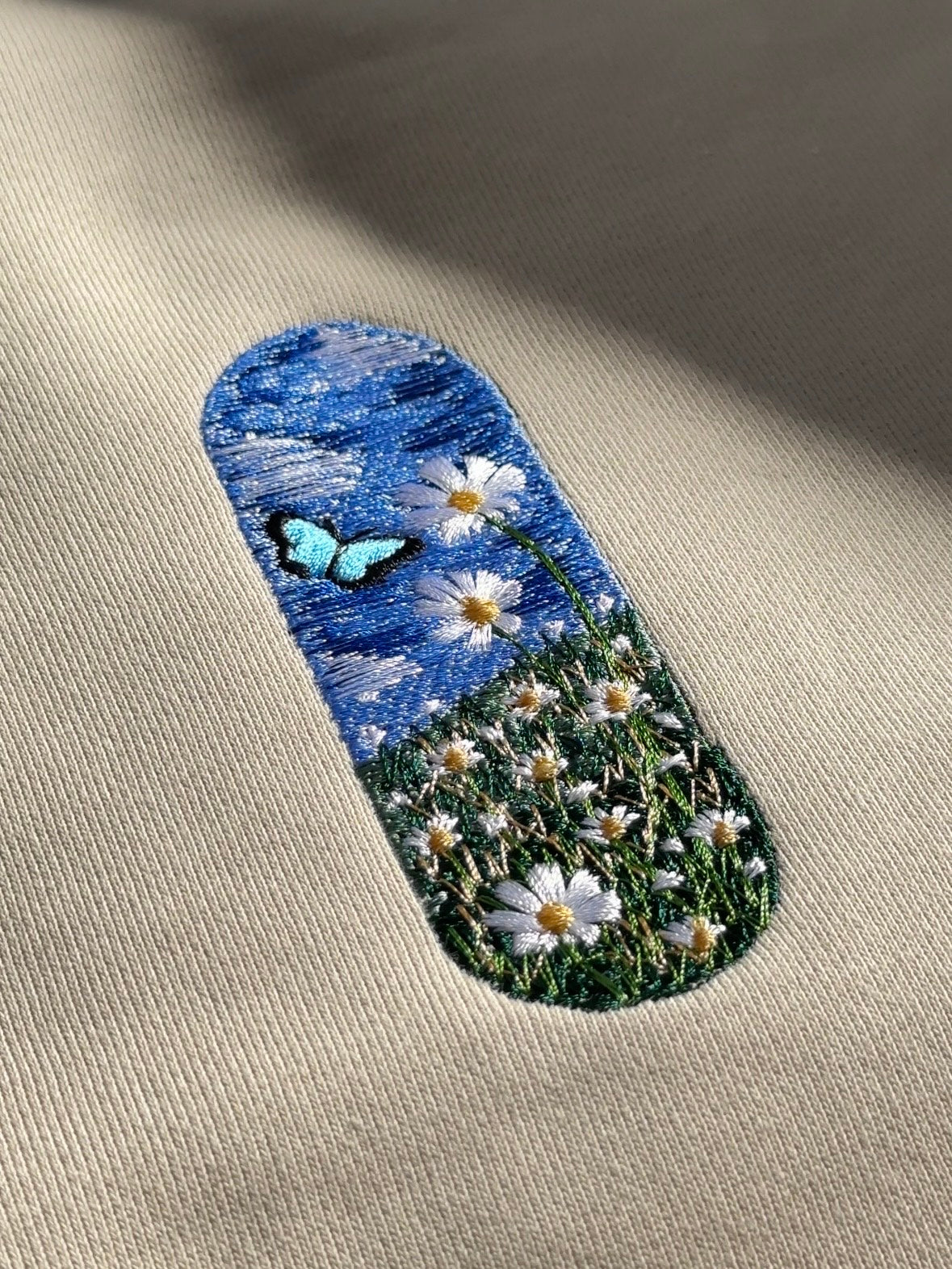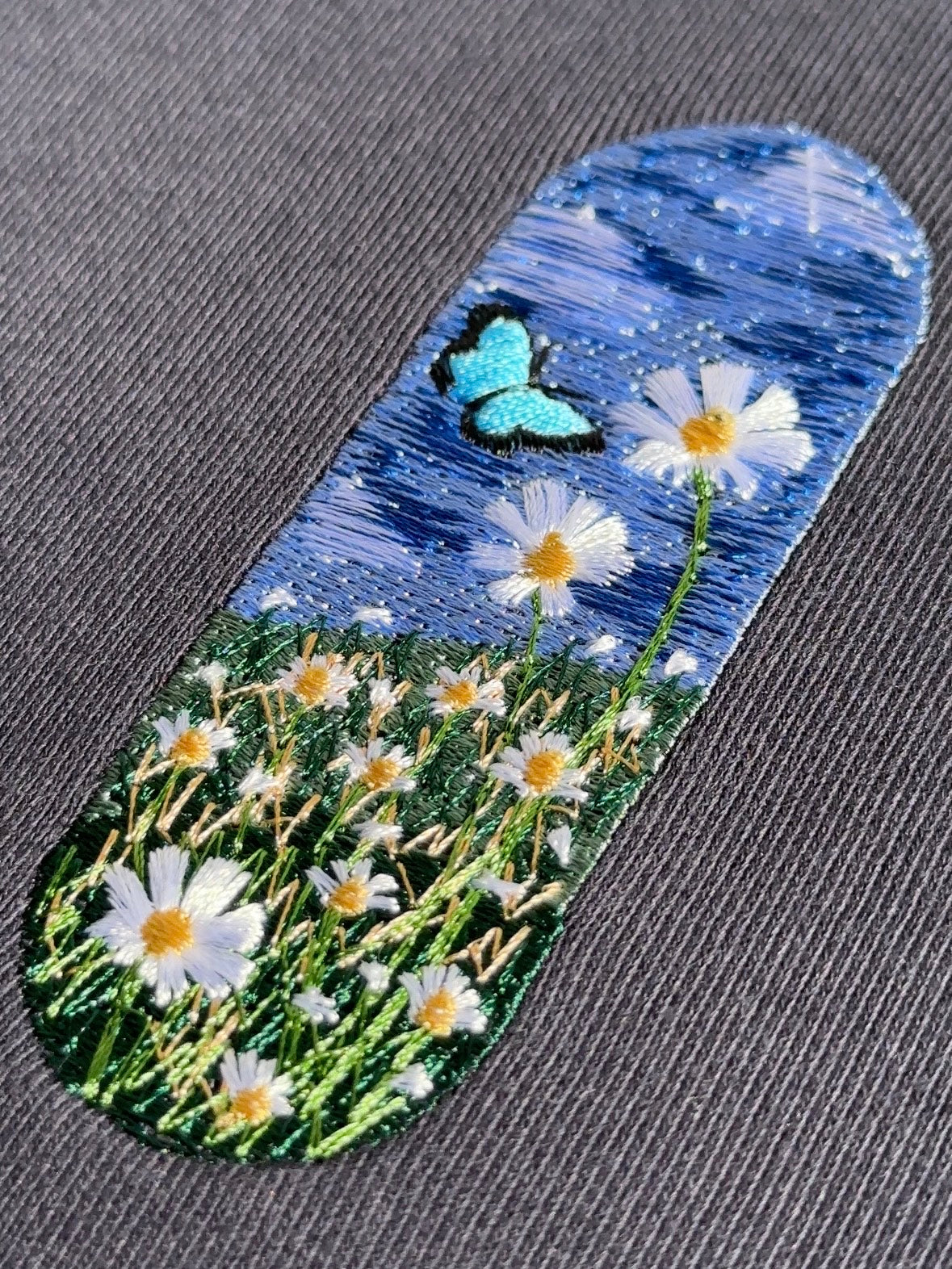 ひとひらの蝶は刺繍でぷっくり、立体的にしています。