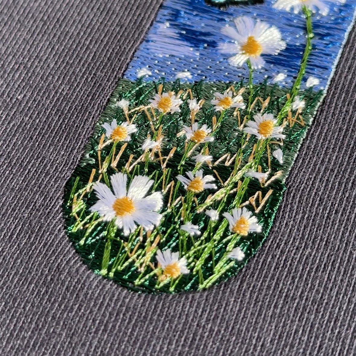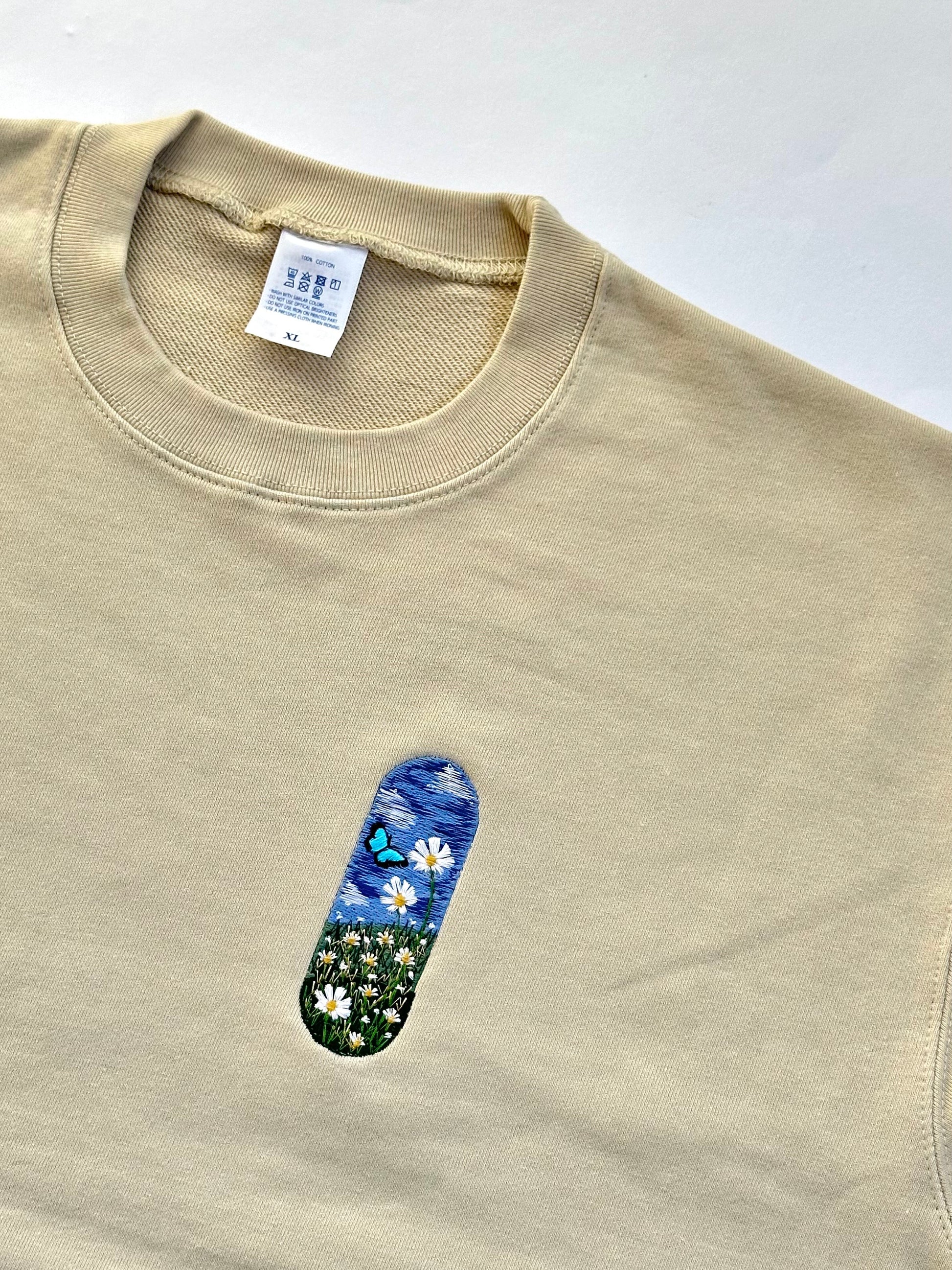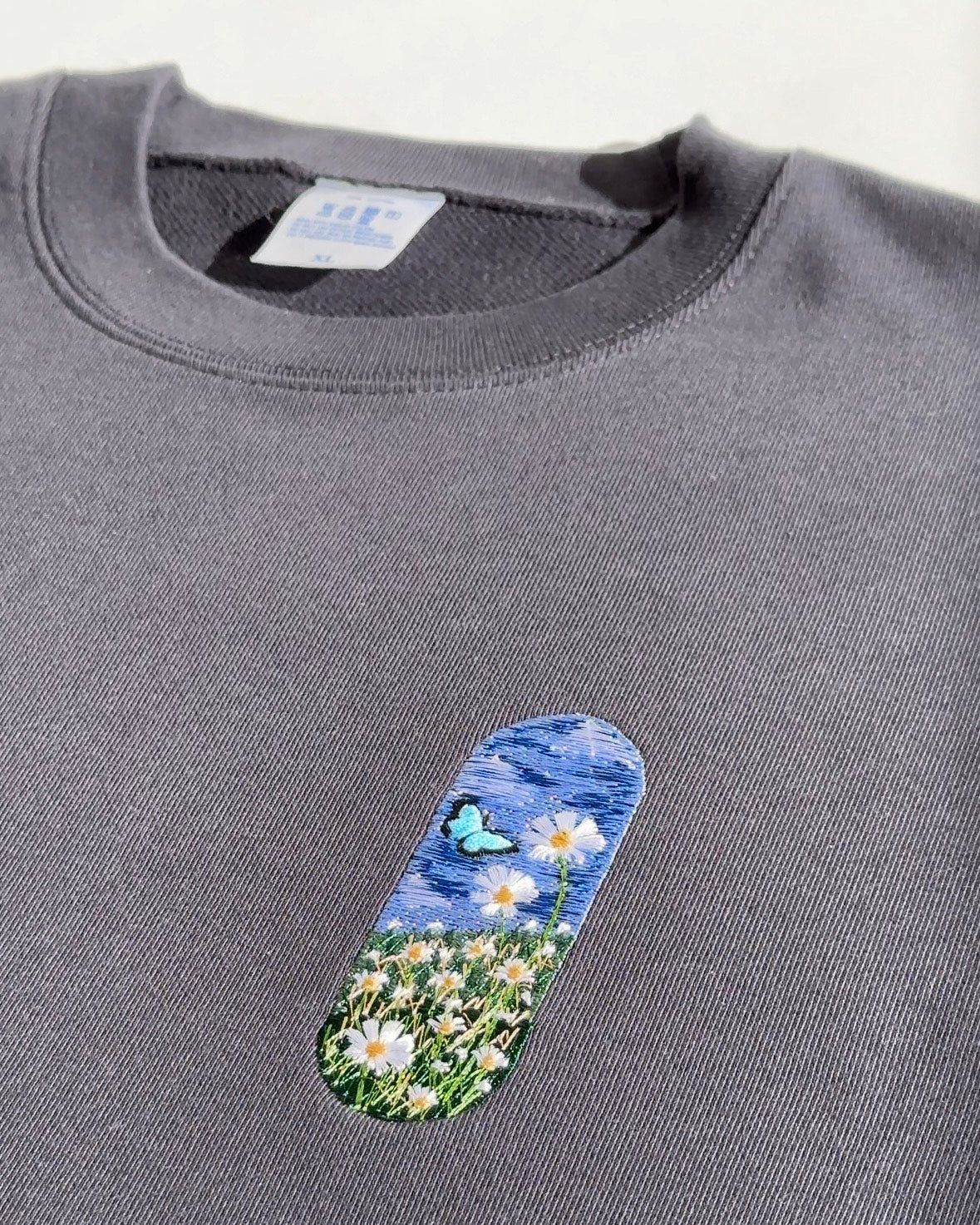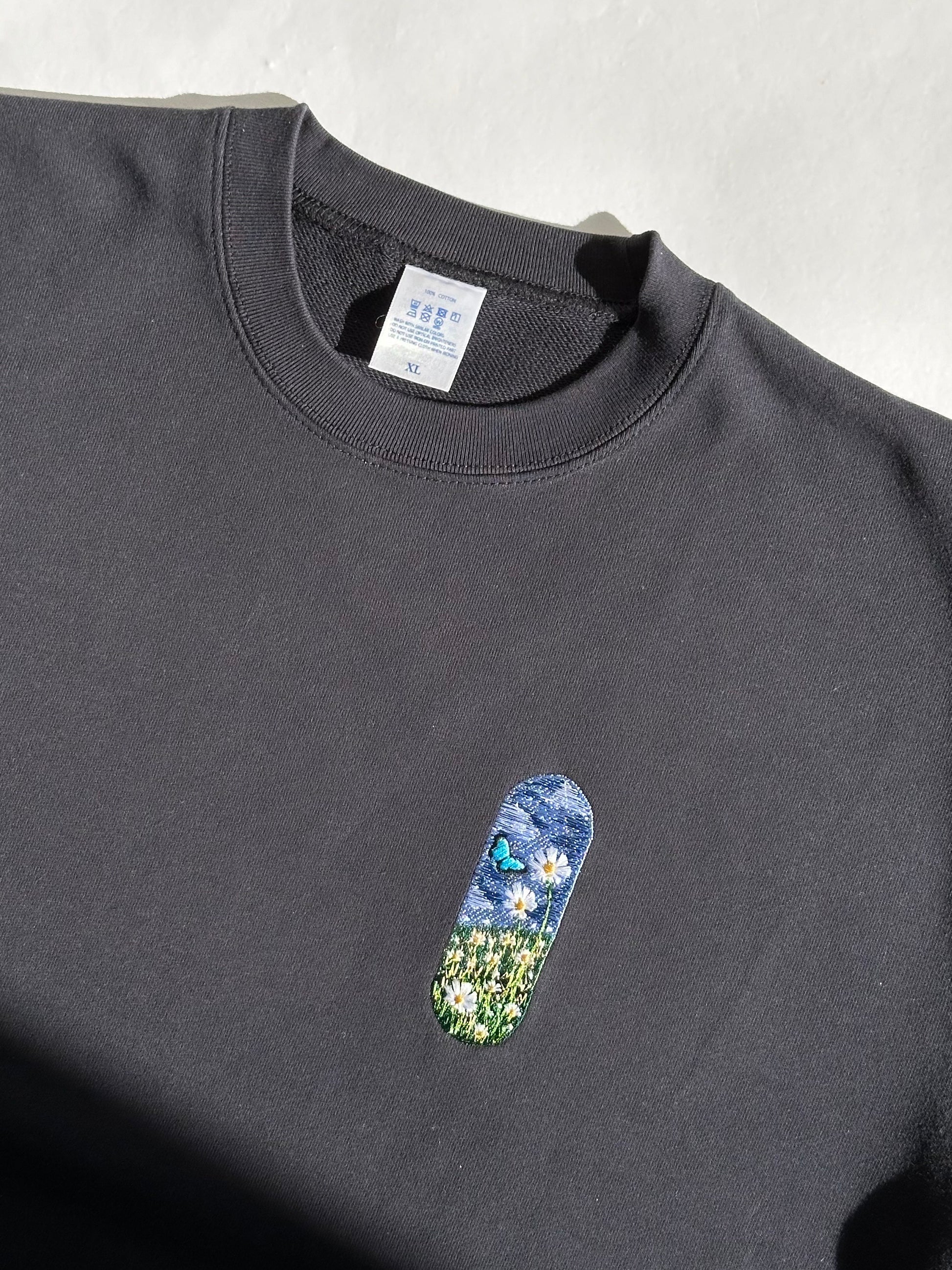 ひとひらの蝶は刺繍でぷっくり、立体的にしています。