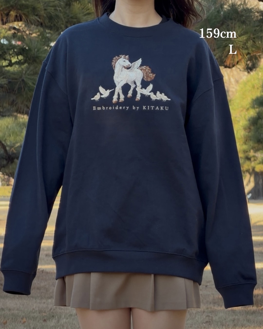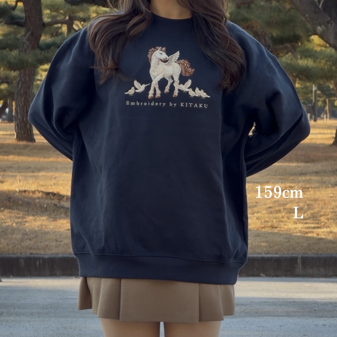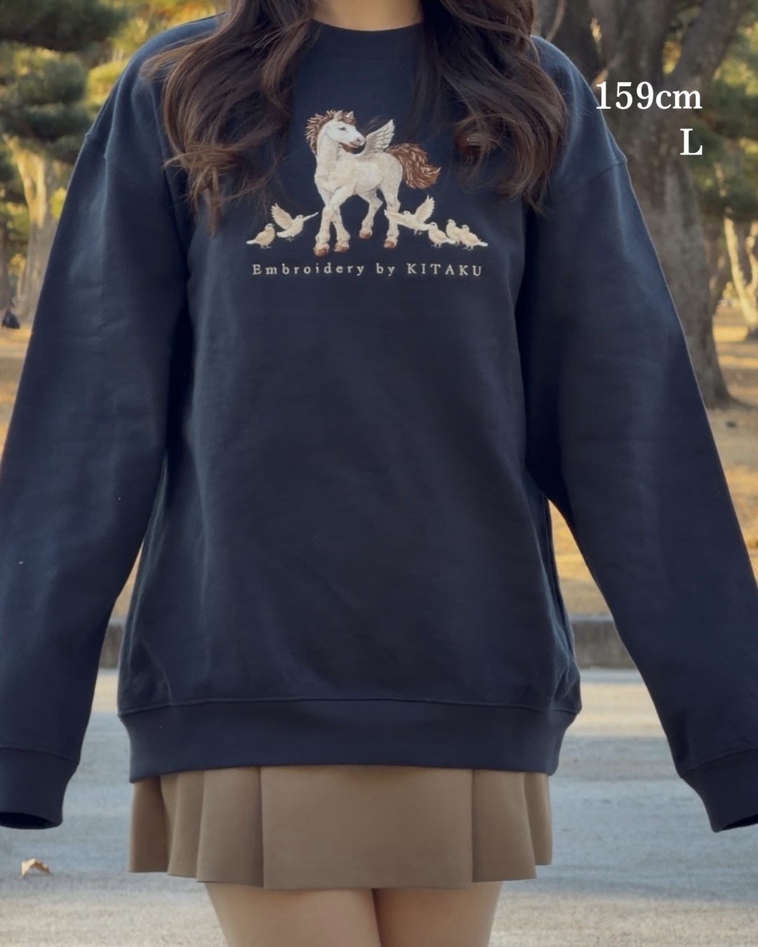 同じ糸色でも、ネイビーとアイボリーのスウェットで見え方が結構異なります。