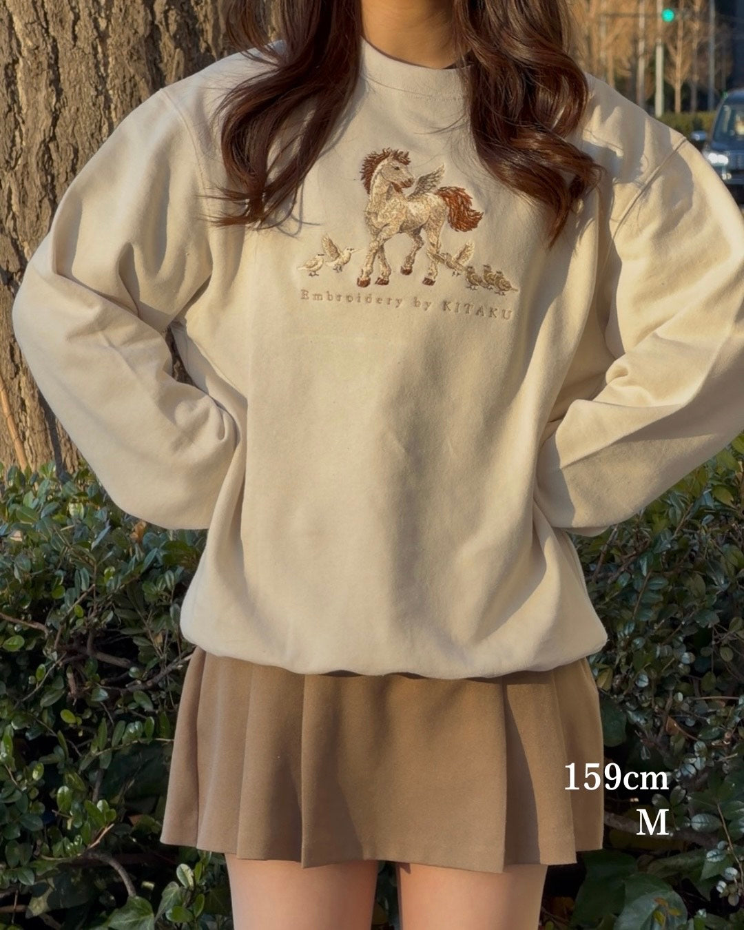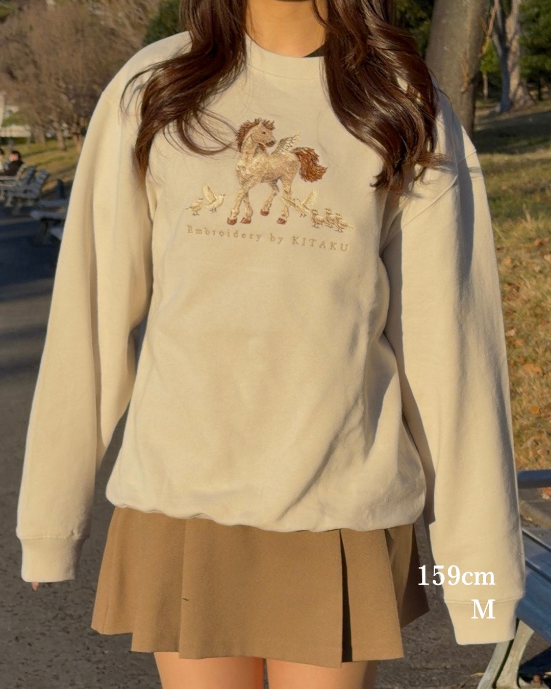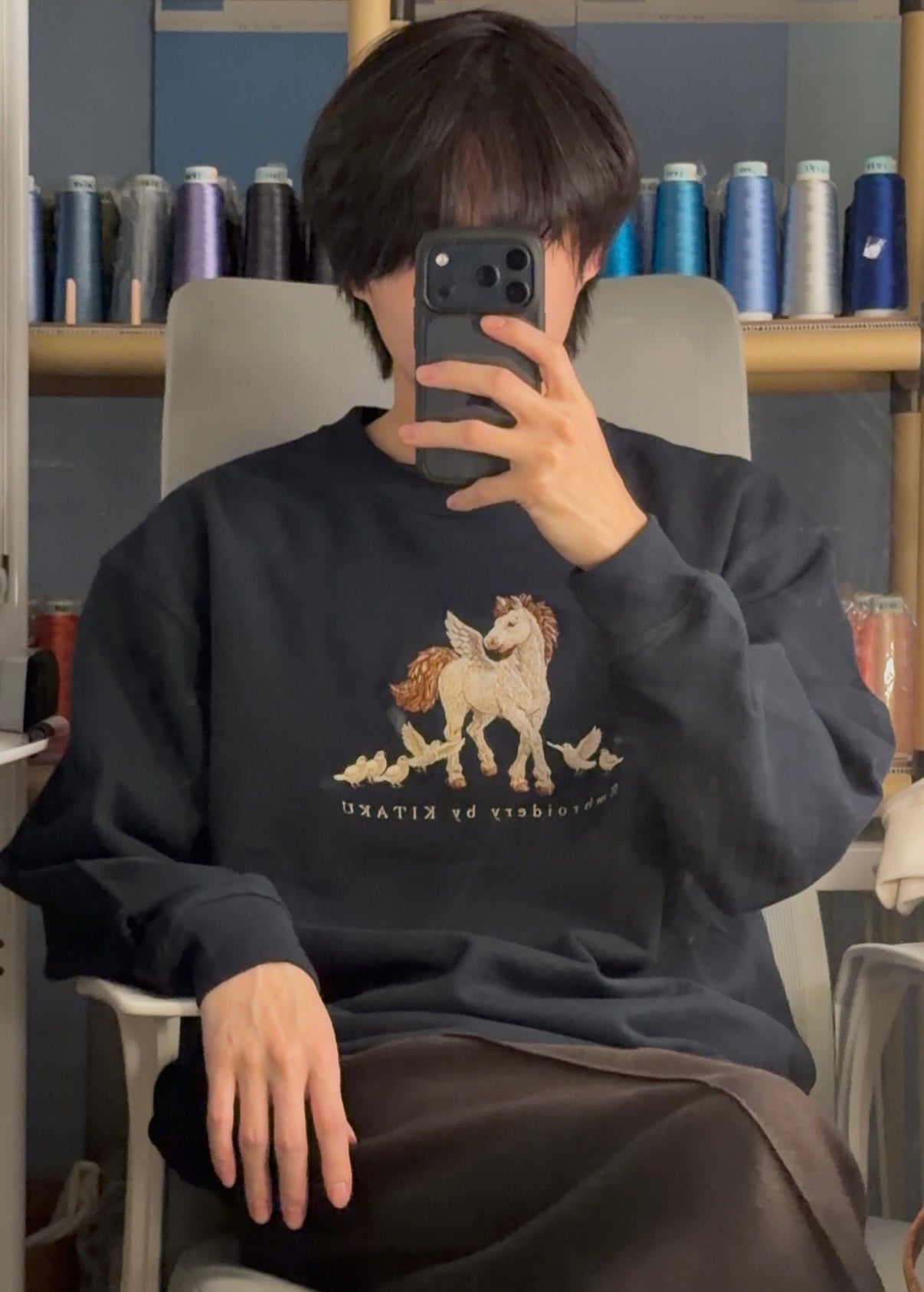 同じ糸色でも、ネイビーとアイボリーのスウェットで見え方が結構異なります。