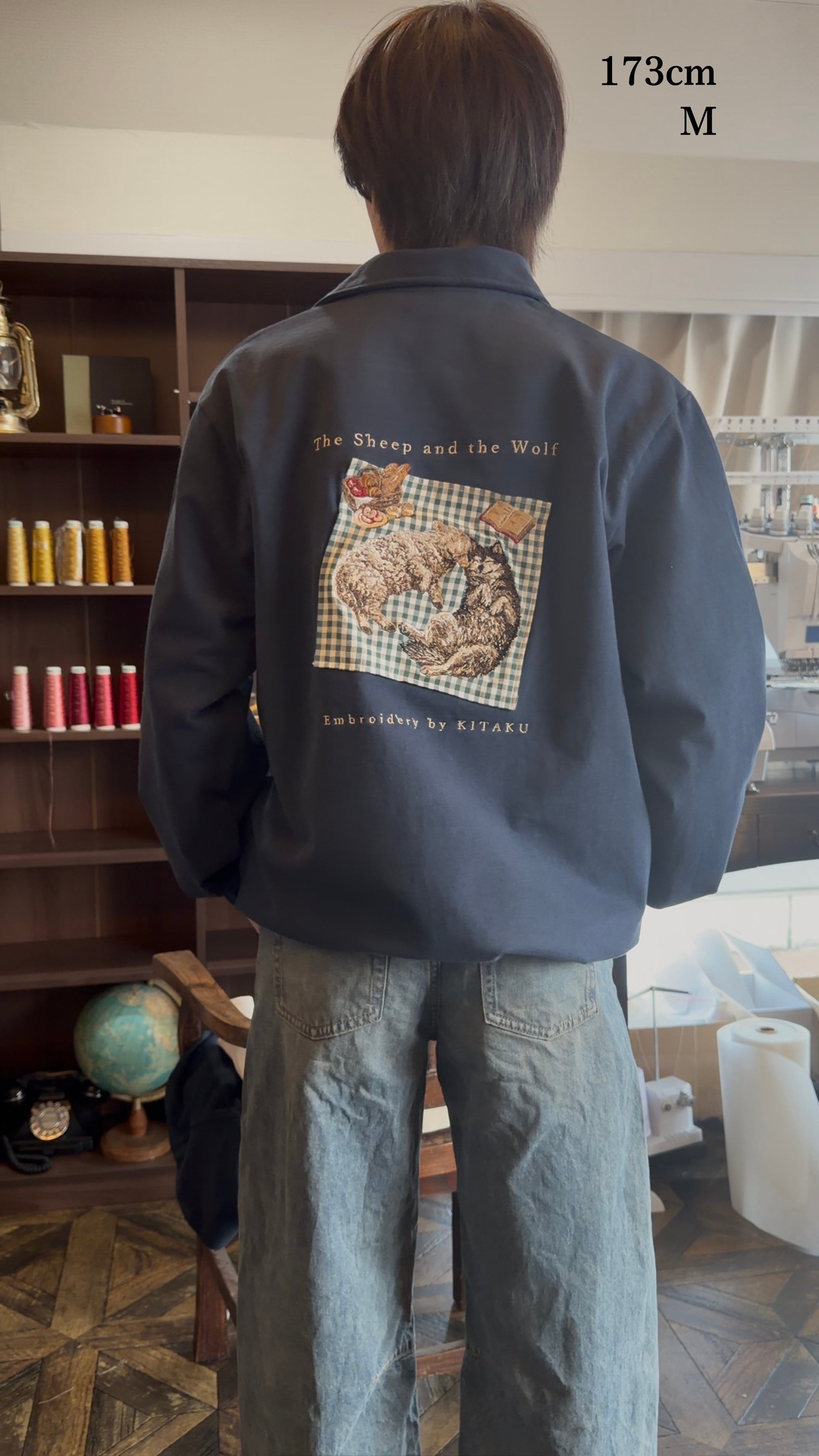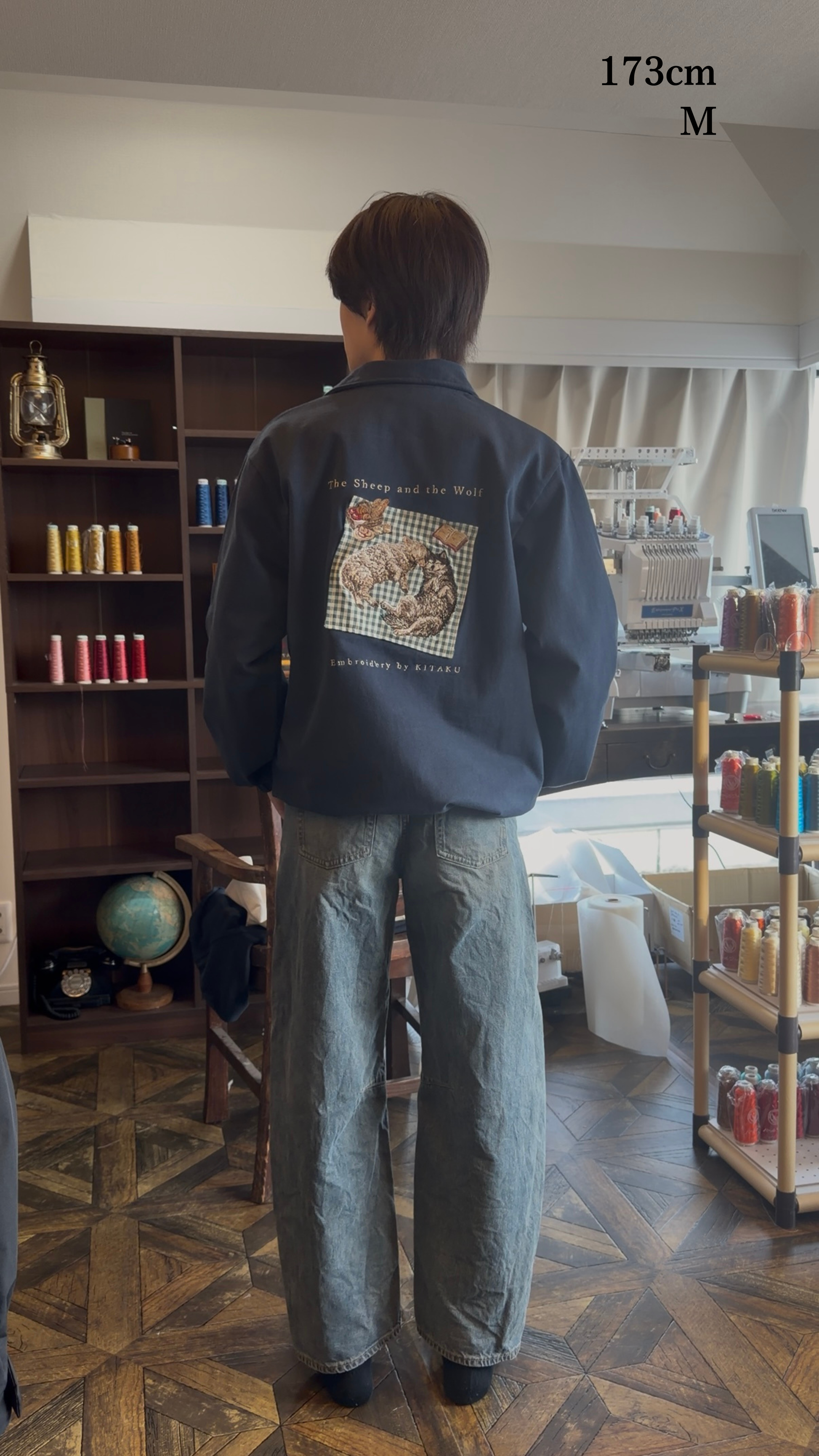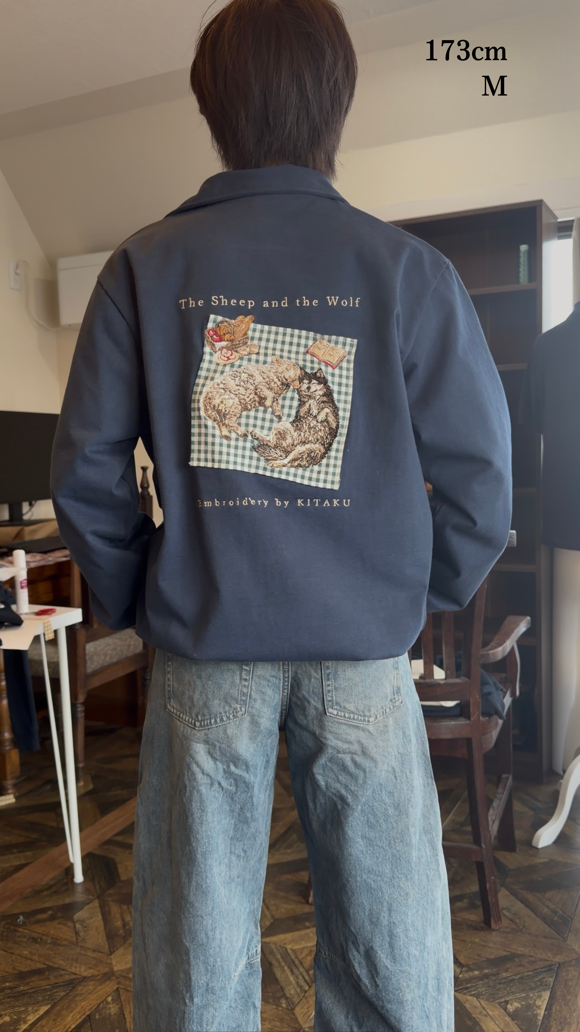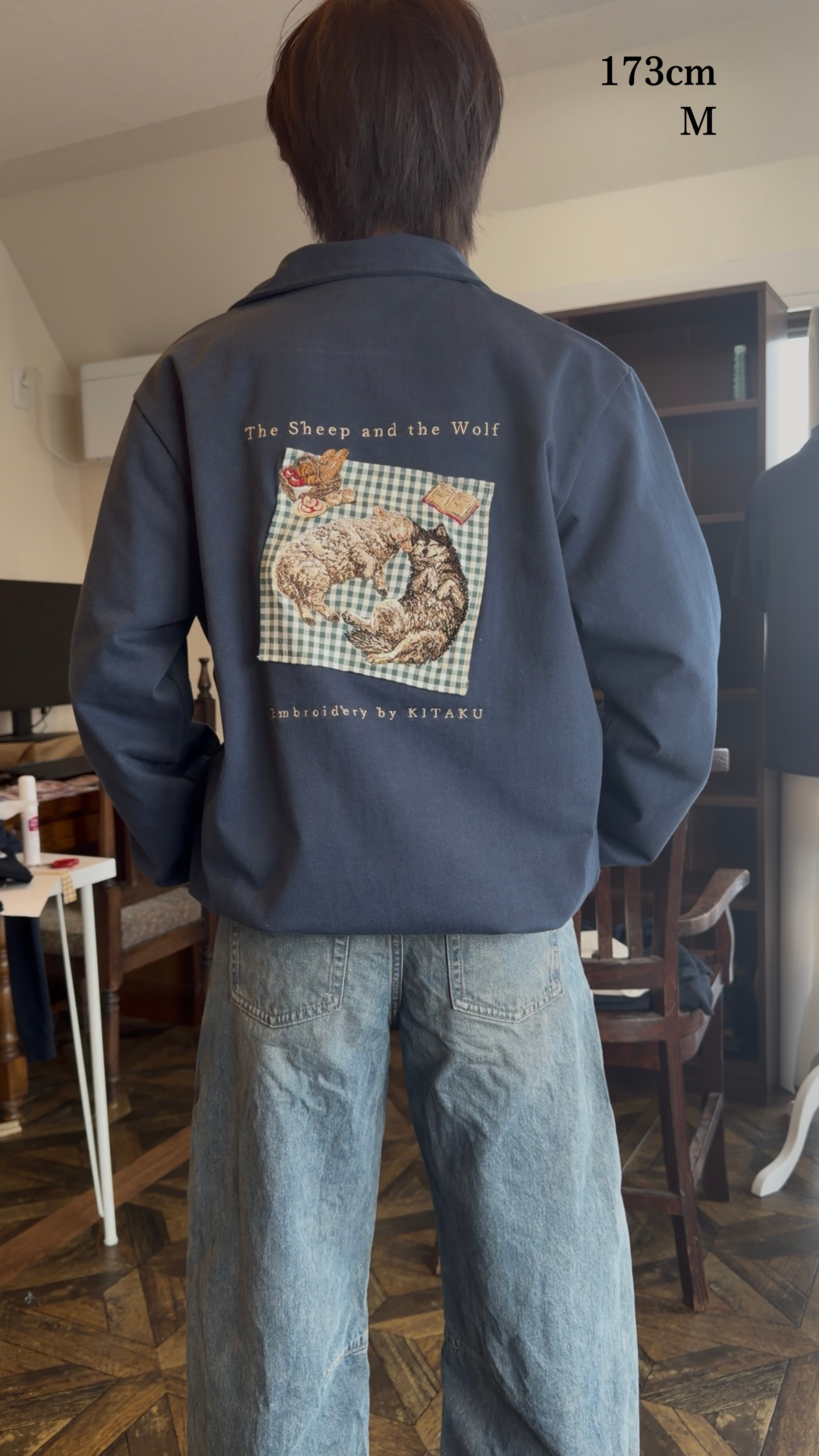 今回のジャケットは、椅子に掛けるだけで眺められる、芸術になりました。