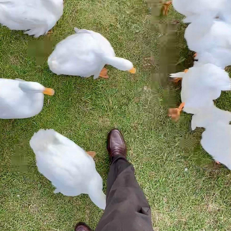 アヒルたちが列をなして歩く「大行進」の姿に出会いました。🦆
