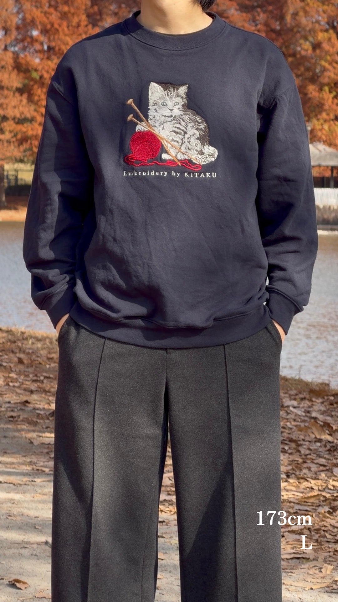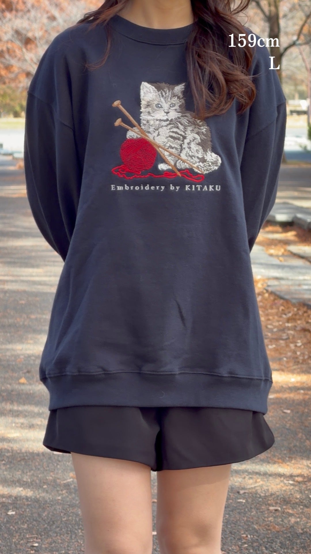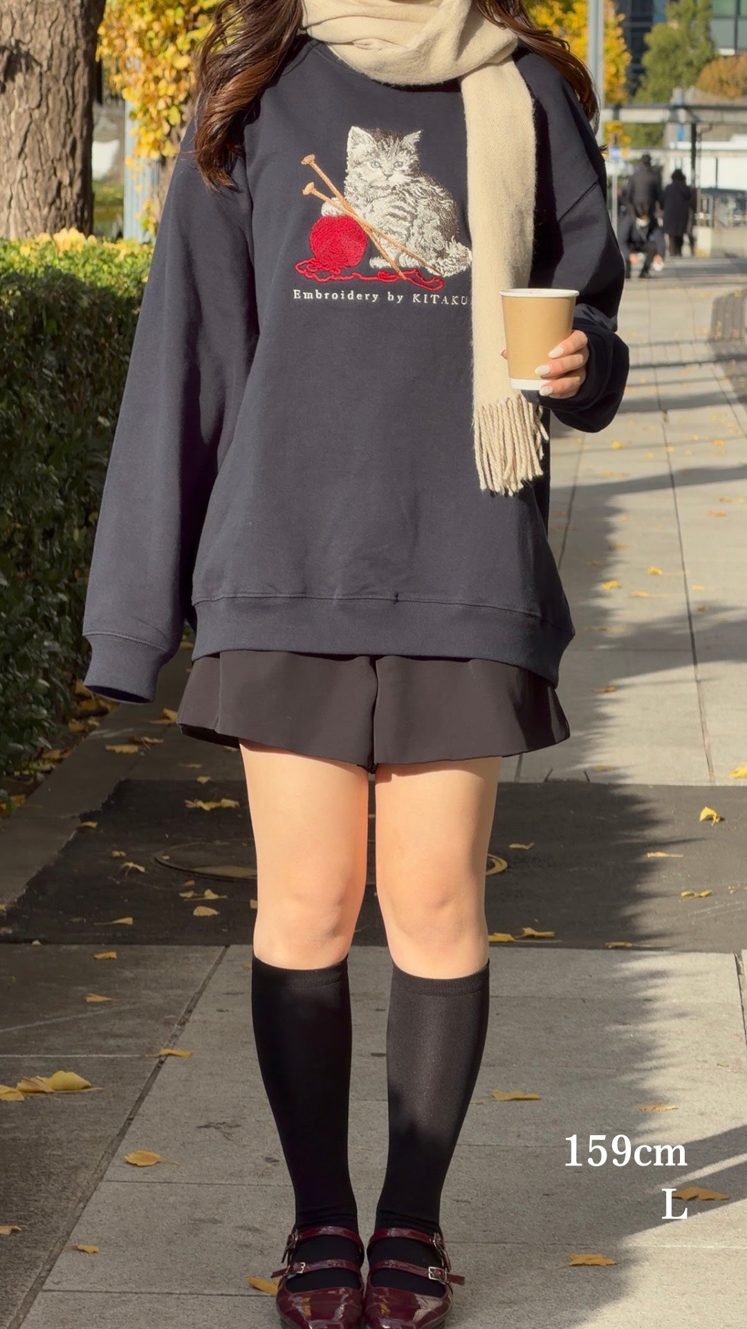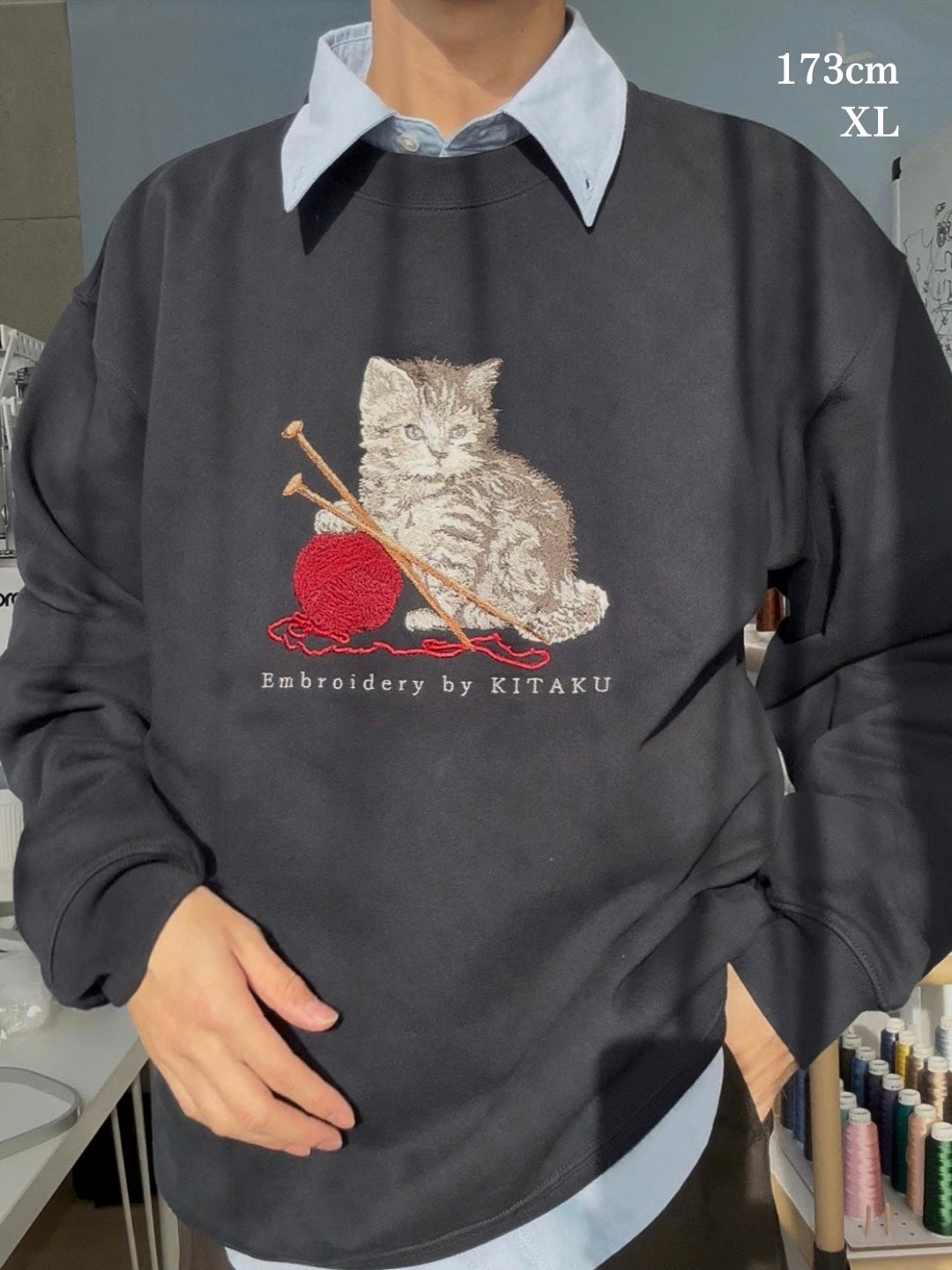 シンプルな形の中の猫の刺繍で、カジュアルさと品の良さを両立させました。
