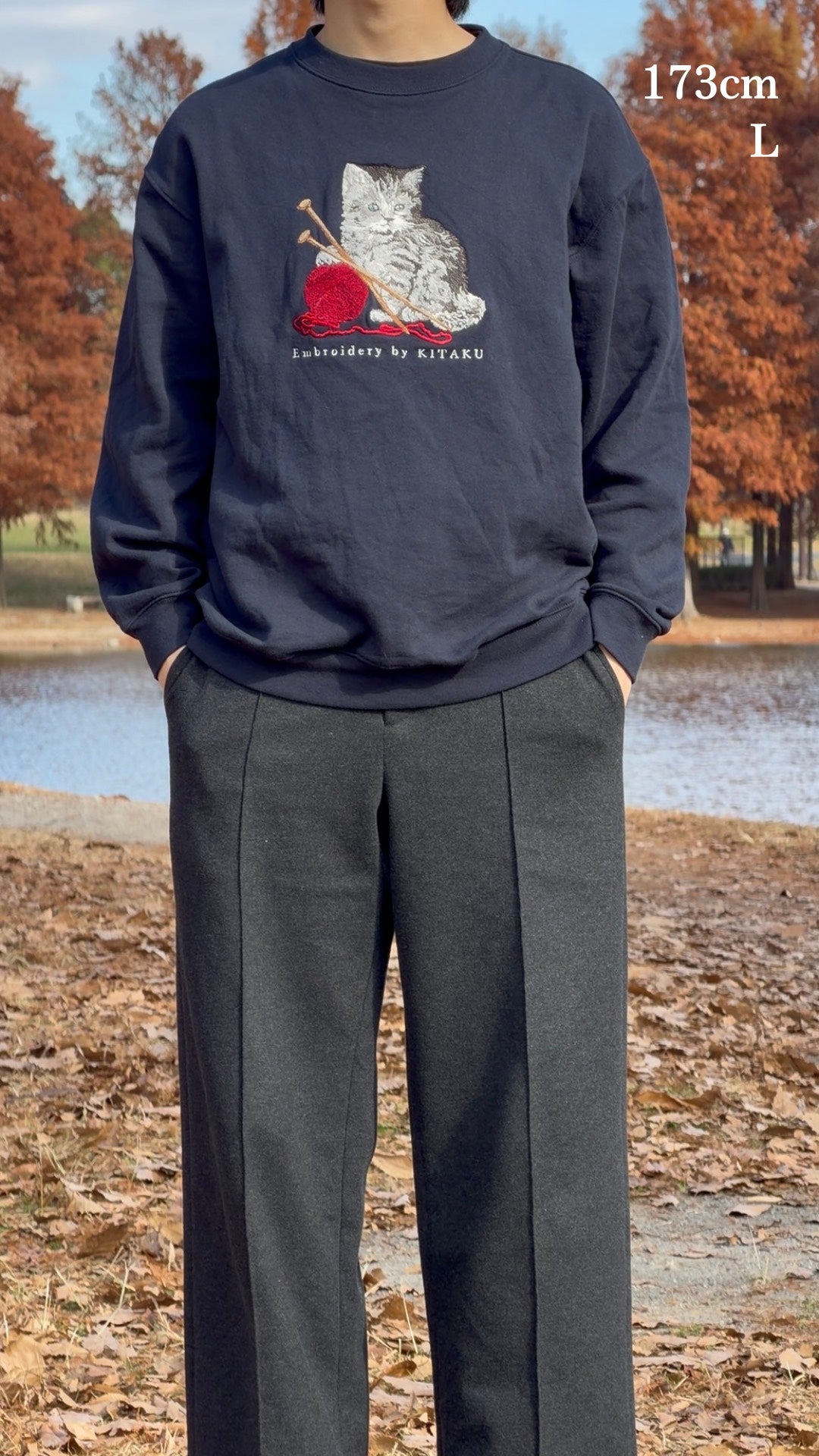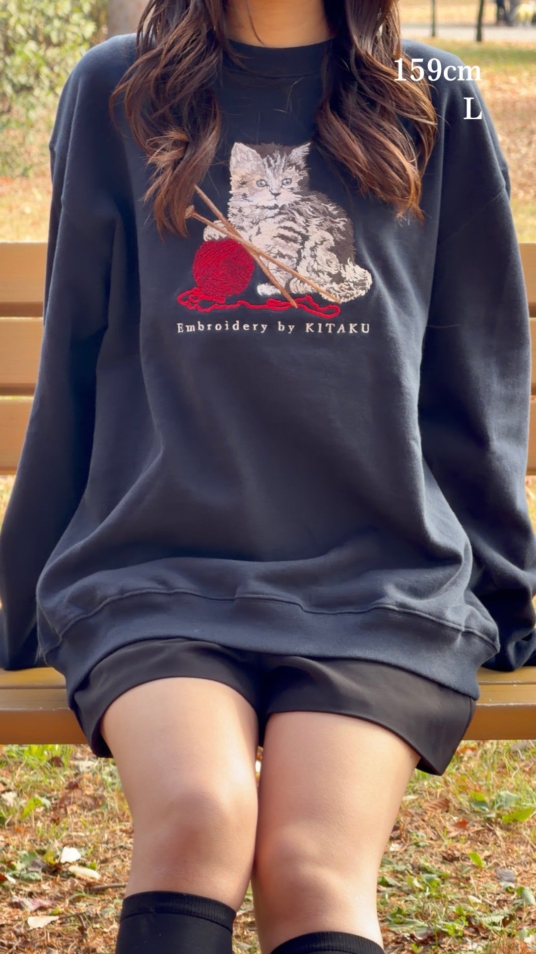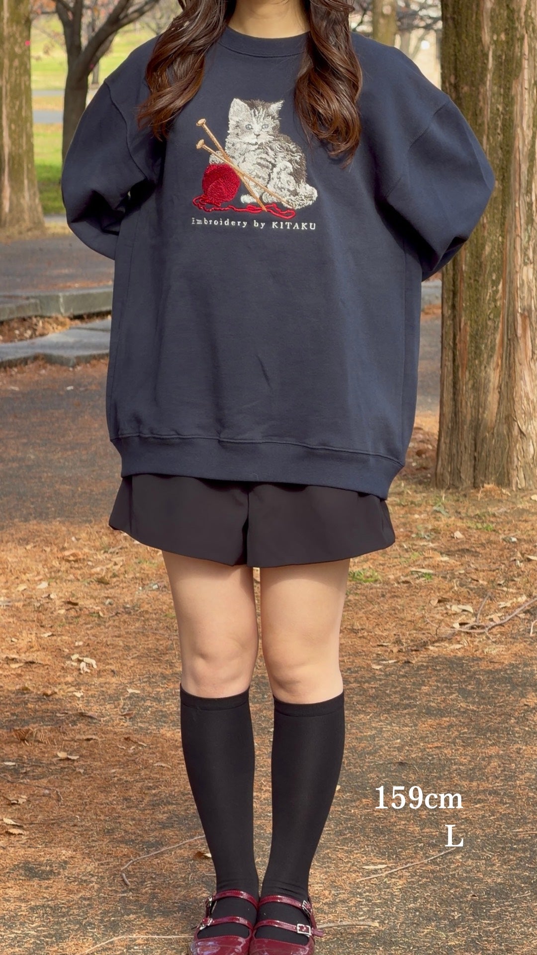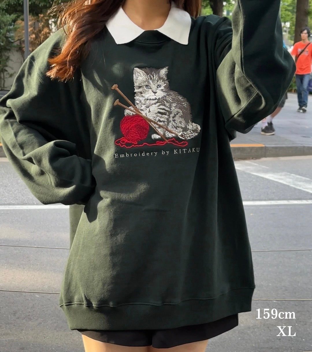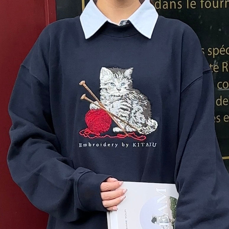 シンプルな形の中の猫の刺繍で、カジュアルさと品の良さを両立させました。