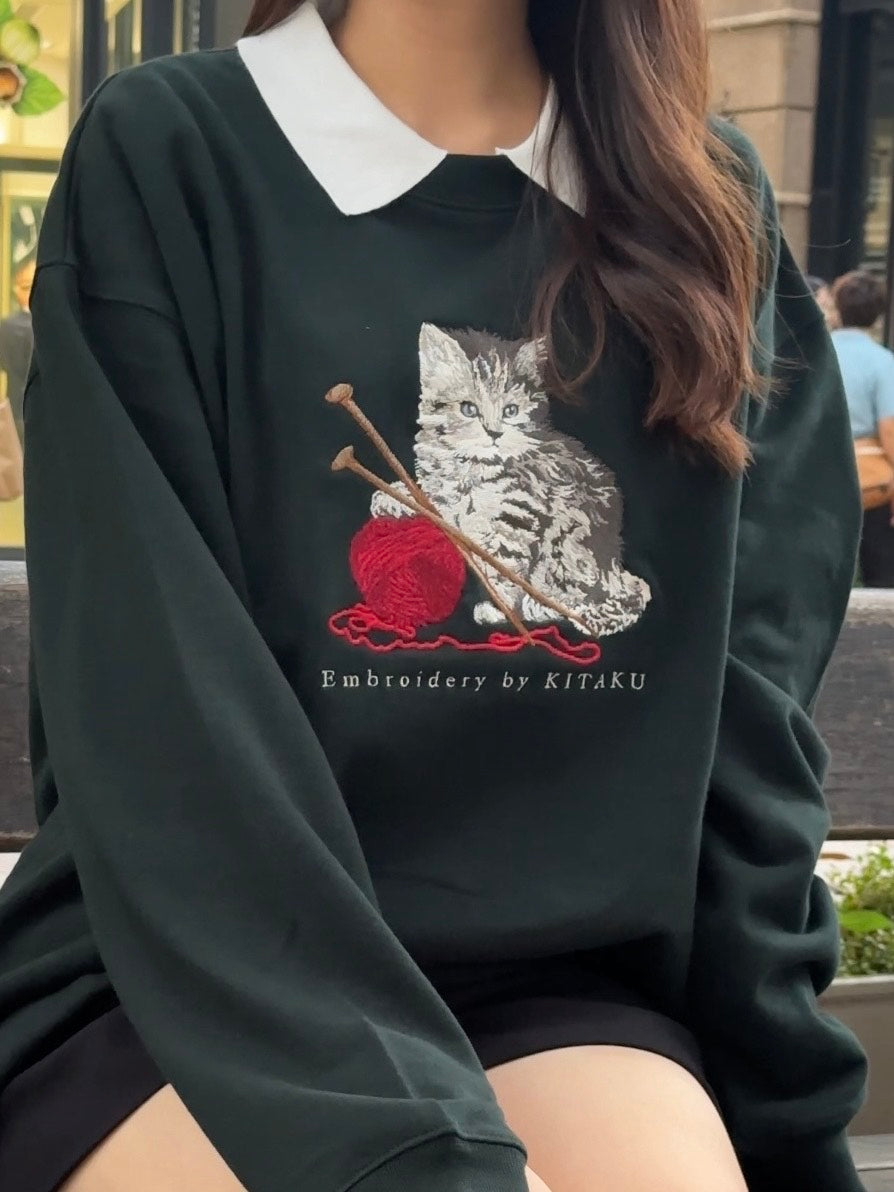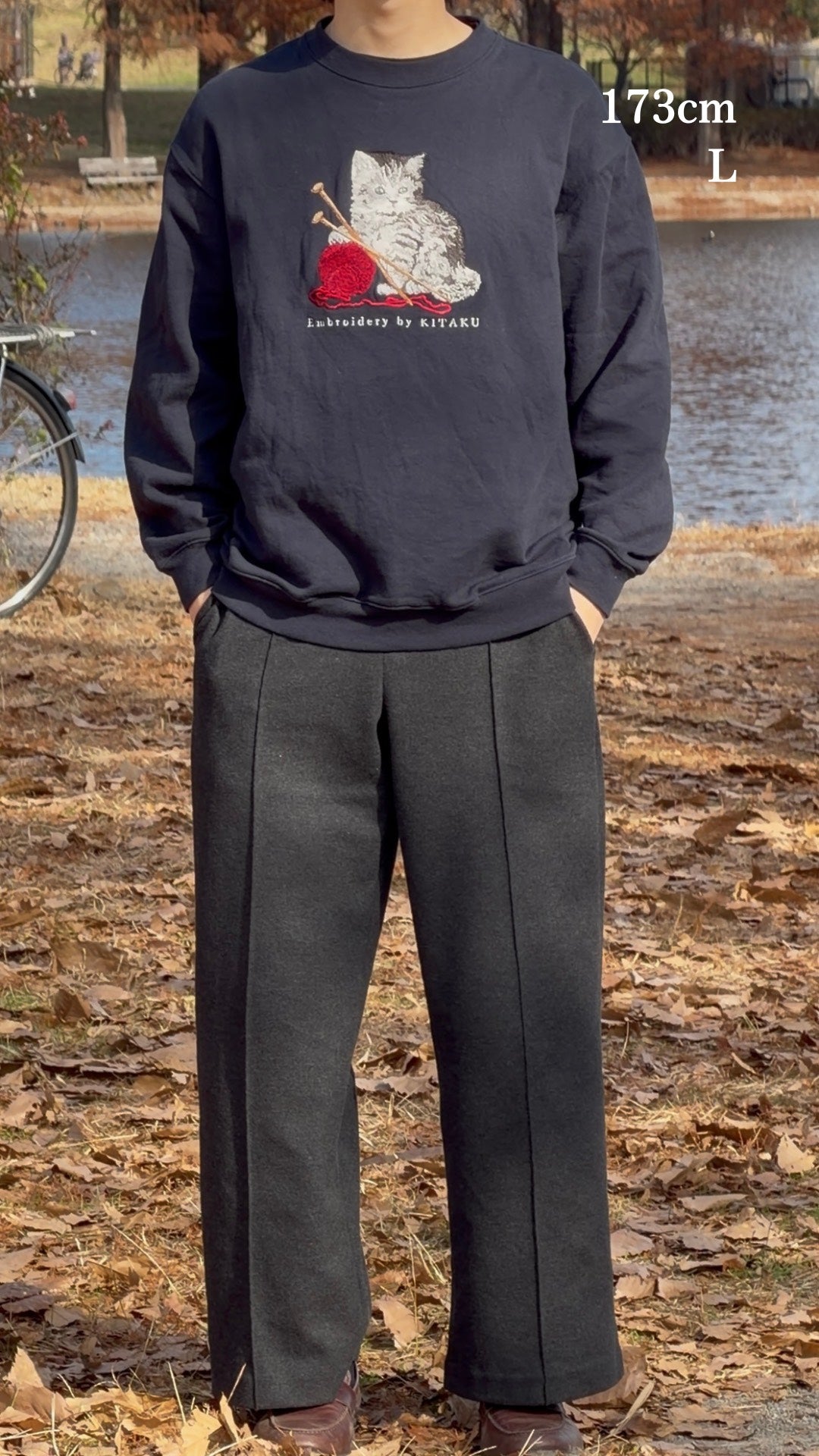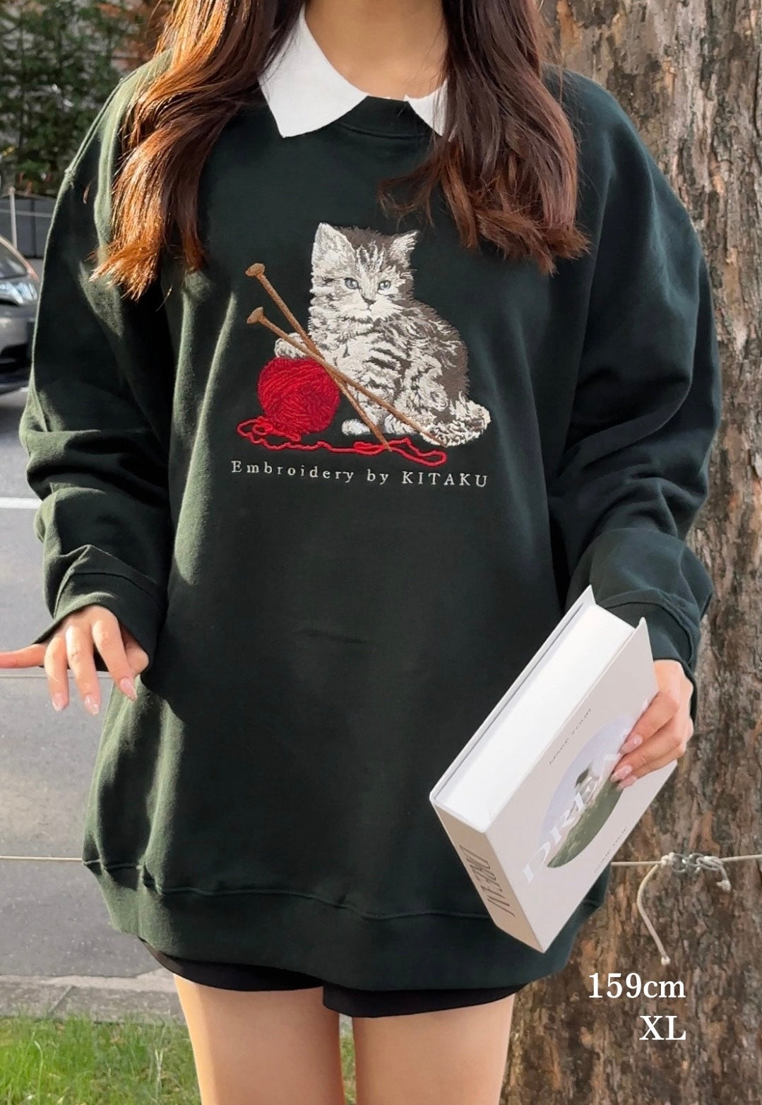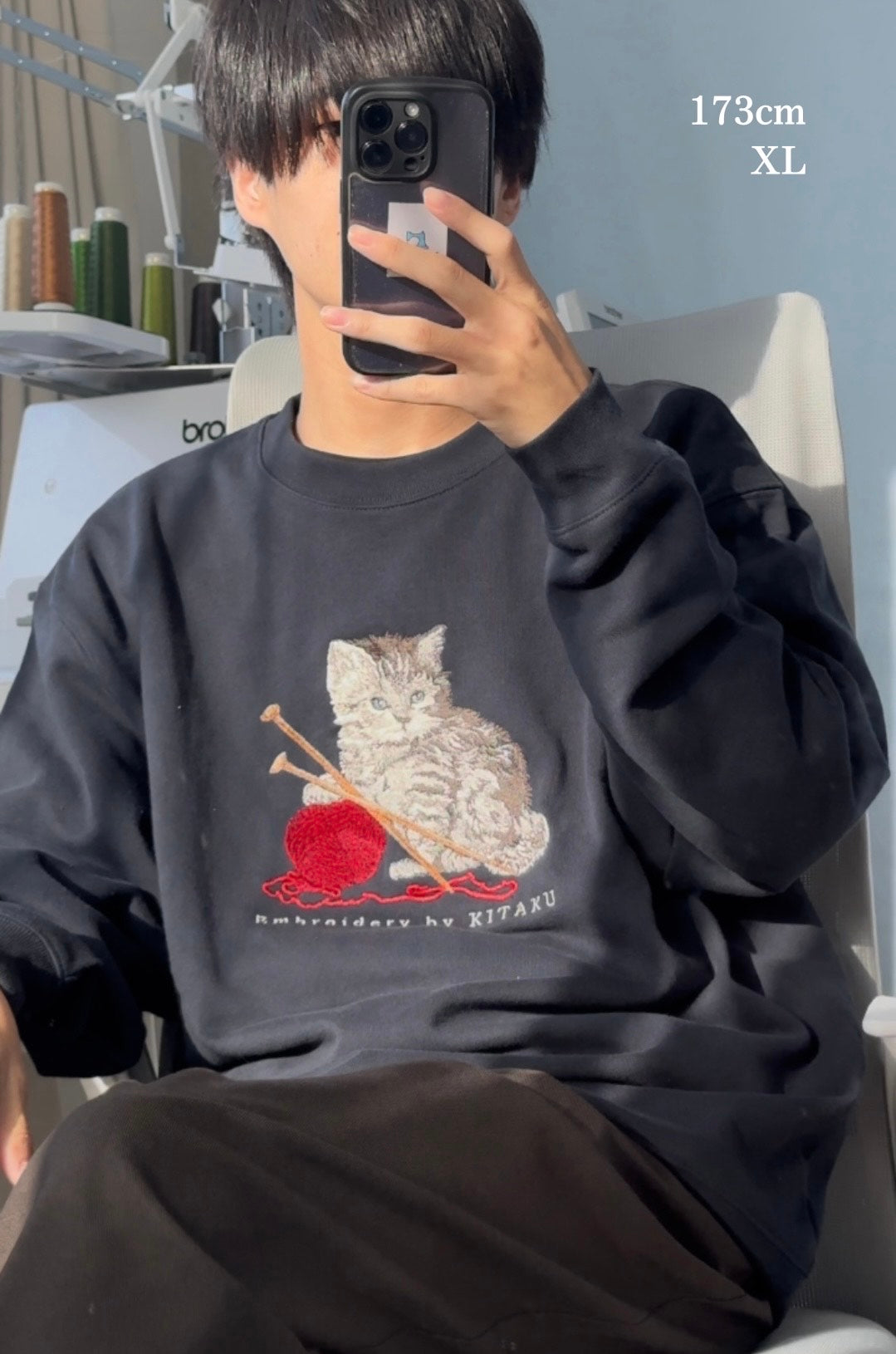 シンプルな形の中の猫の刺繍で、カジュアルさと品の良さを両立させました。