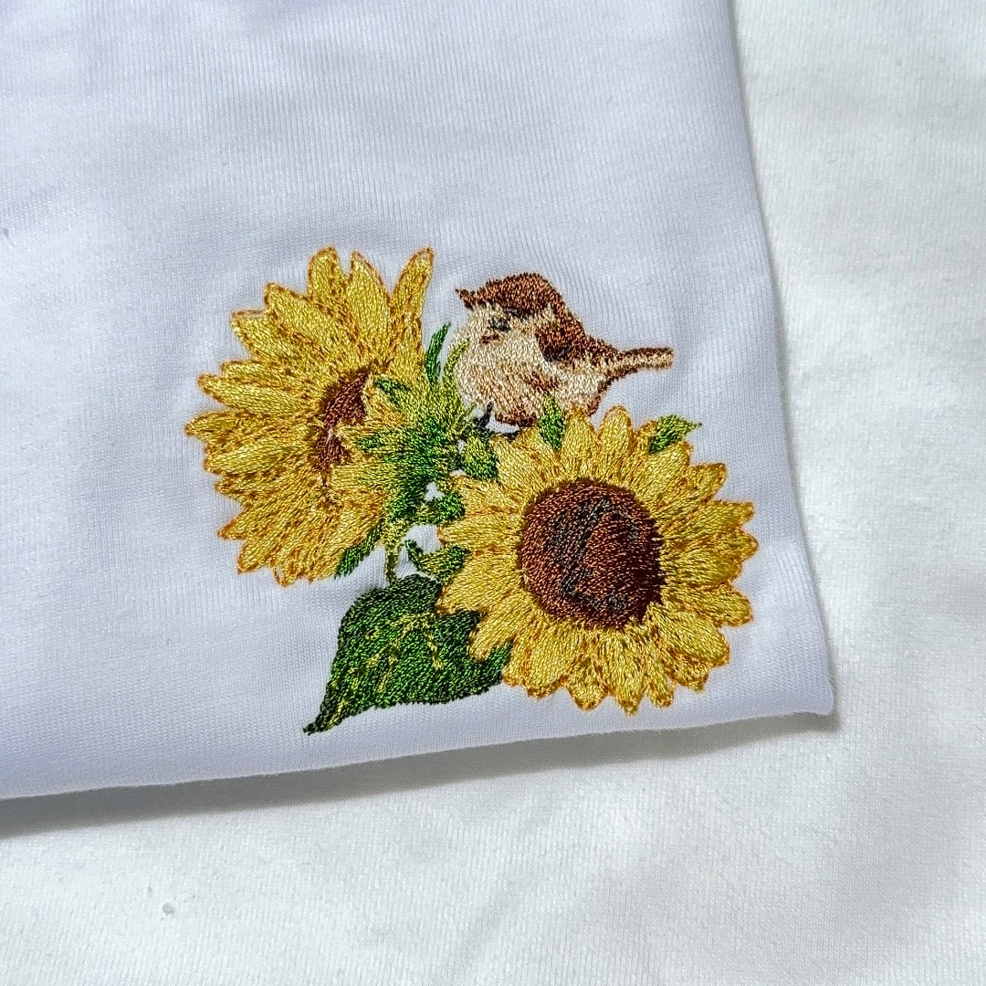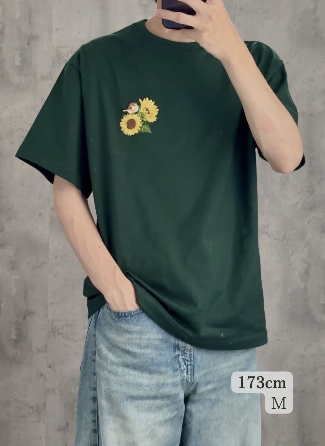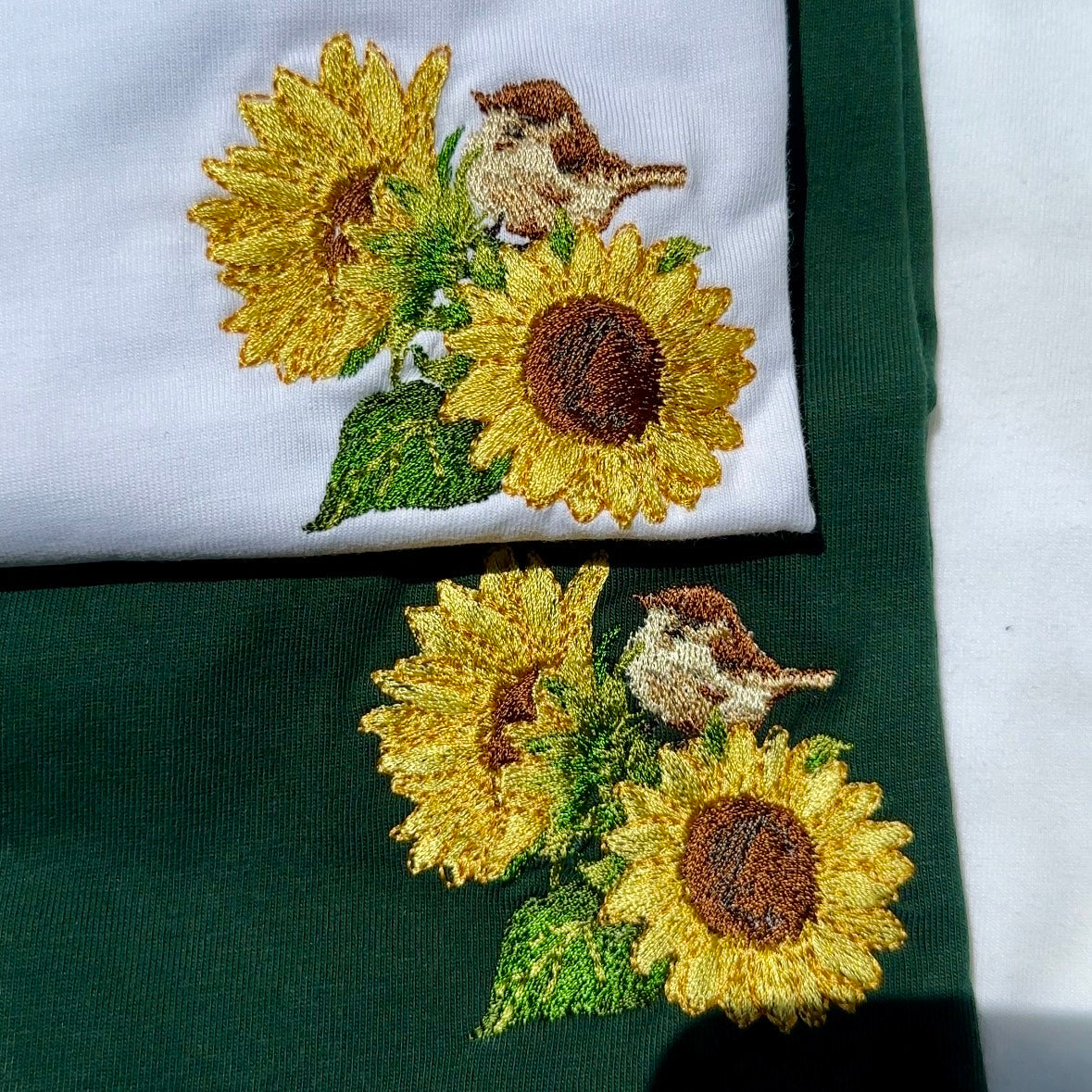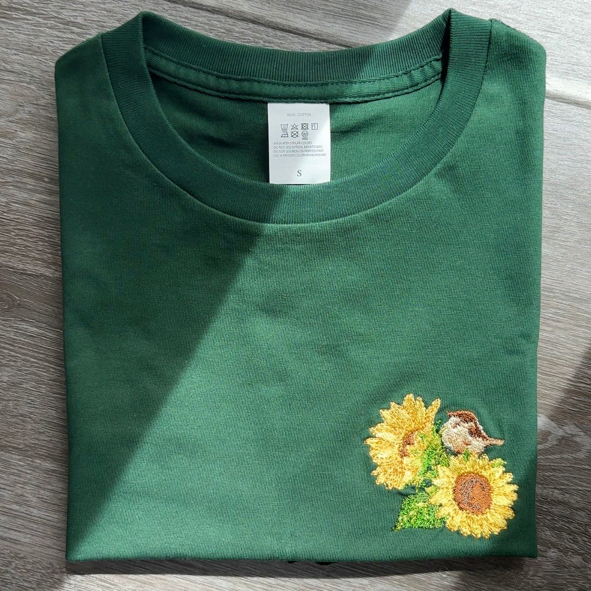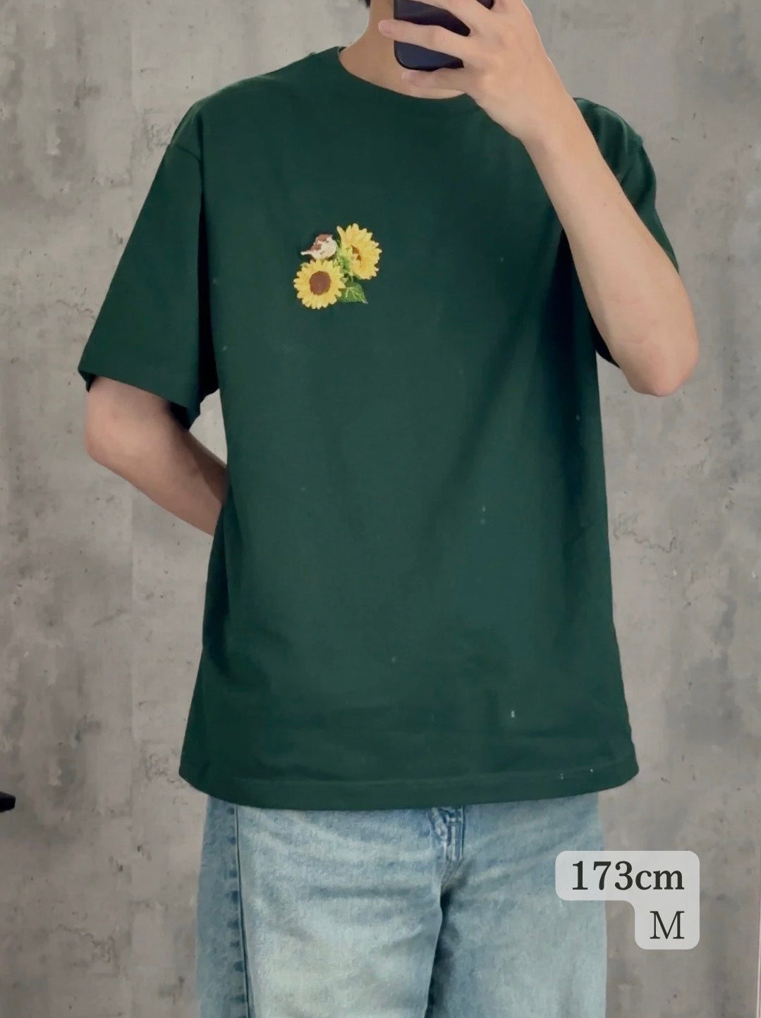 だからこそこの刺繍では、ひまわりを立体的に、まるで本当に太陽の方を向いて咲いているように表現することにこだわりました🌻😊